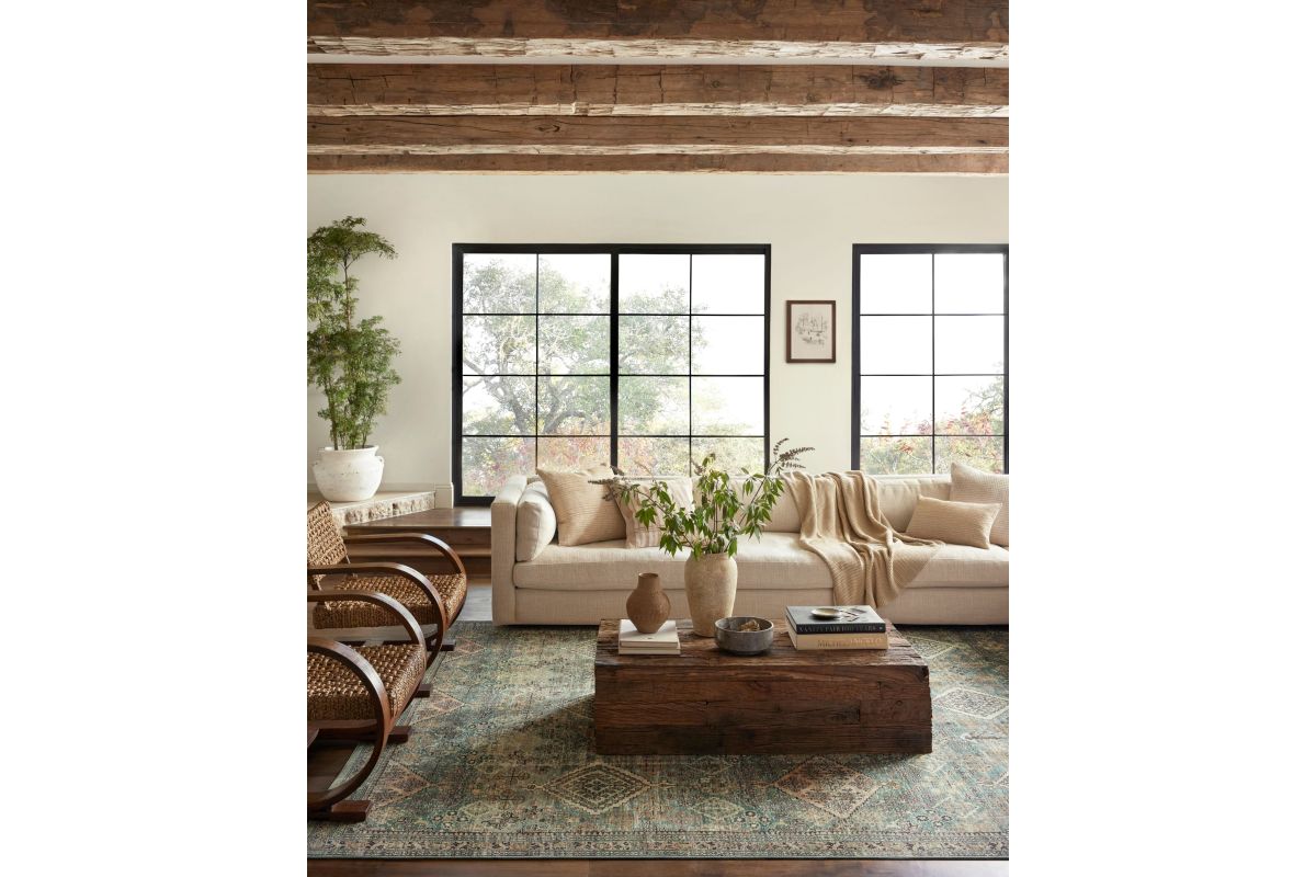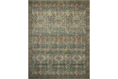 The Sinclair Collection for Magnolia Home by Joanna Gaines x Loloi is power-loomed of polyester, including 58% Global Recycling Standard (GRS) certified recycled polyester (made from recycled plastic bottles), certified by Control Union 1171944. Sinclair area rugs have incredible softness and durability comparable to classic power-loomed rugs, while also reducing waste in their production. This collection is also machine-washable, making it an ideal rug in high-traffic living rooms, hallways, entryways, and children’s rooms. The design features antique motifs with intricate details and slight distressing, creating a sophisticated, storied feel.