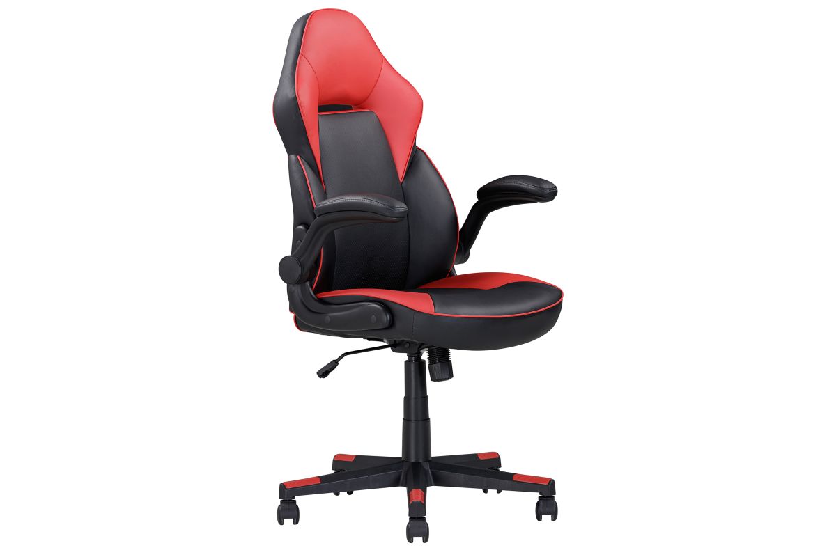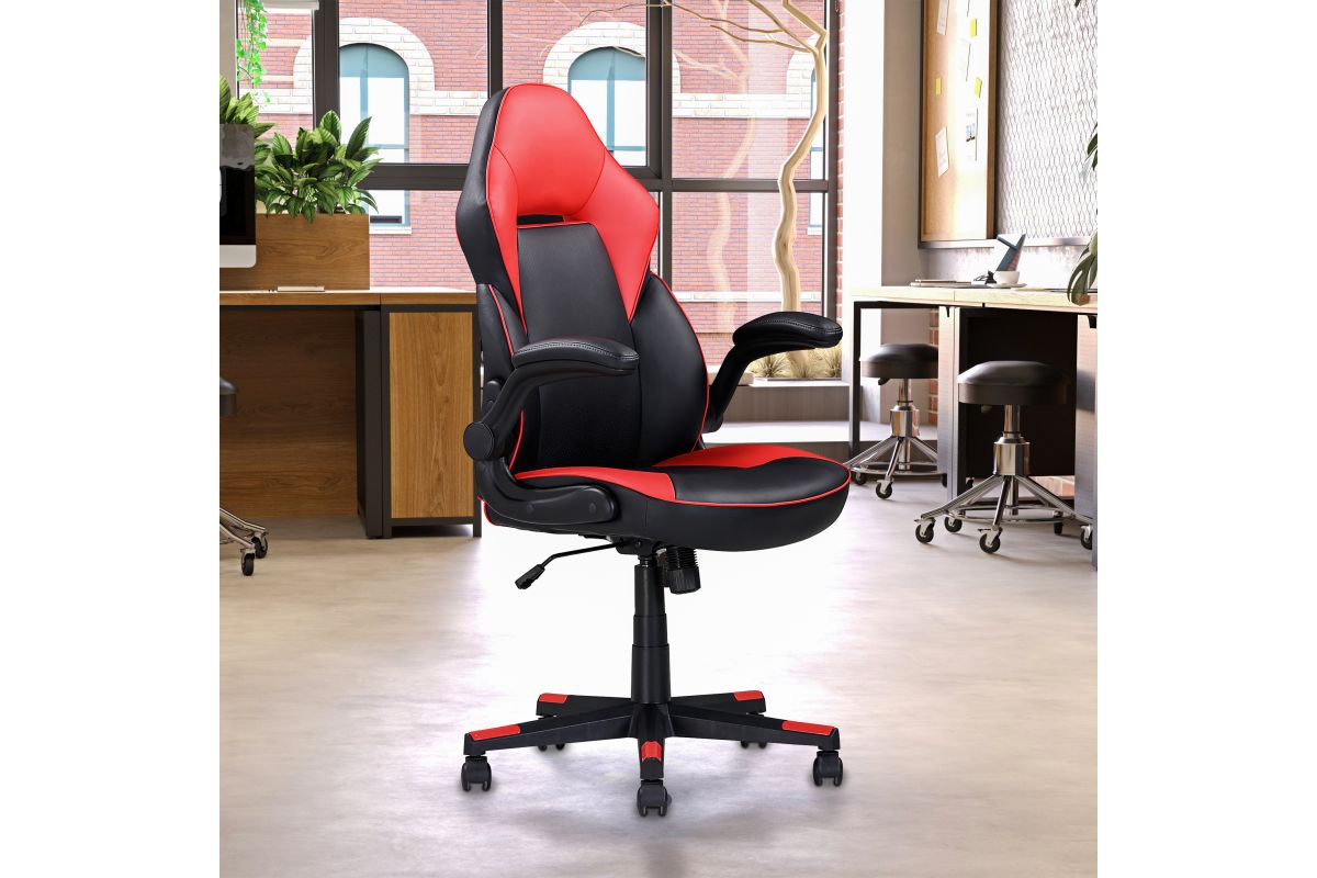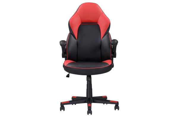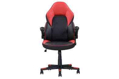 The Sealy® Gamer 115 Office Chair is your ultimate sidekick, whether you're dominating virtual battles or powering through work. With its bold design and ergonomic features, this chair blends style, comfort, and functionality effortlessly. The sleek faux leather upholstery and dynamic black-and-red accents bring energy to your setup, while the supportive armrests and 28-inch high back keep you comfortable during long sessions. Tailor your experience with a gas lift for height adjustment, smooth 360-degree swivel, and a 15-degree tilt for laid-back relaxation. Sturdy star-shaped legs and smooth-rolling nylon casters make mobility a breeze, so you can focus on what matters most—winning.