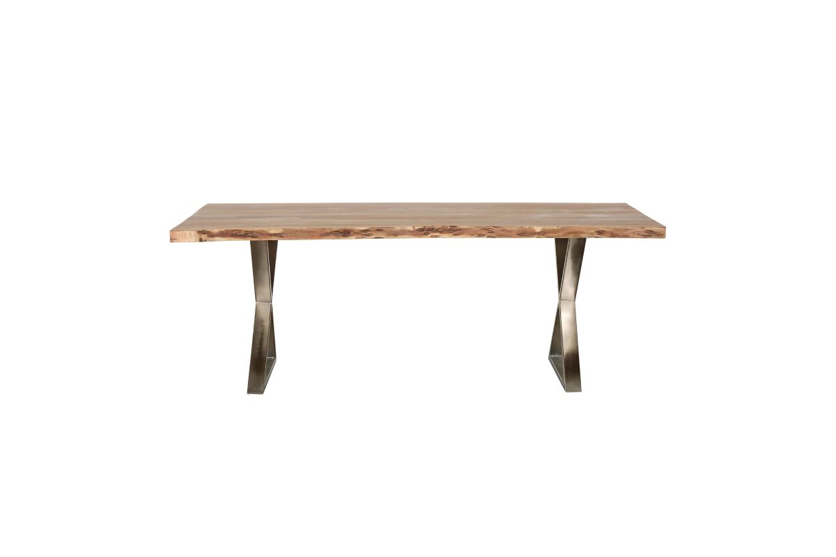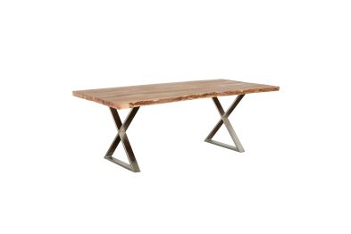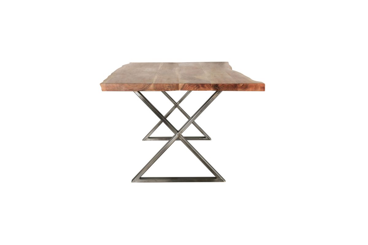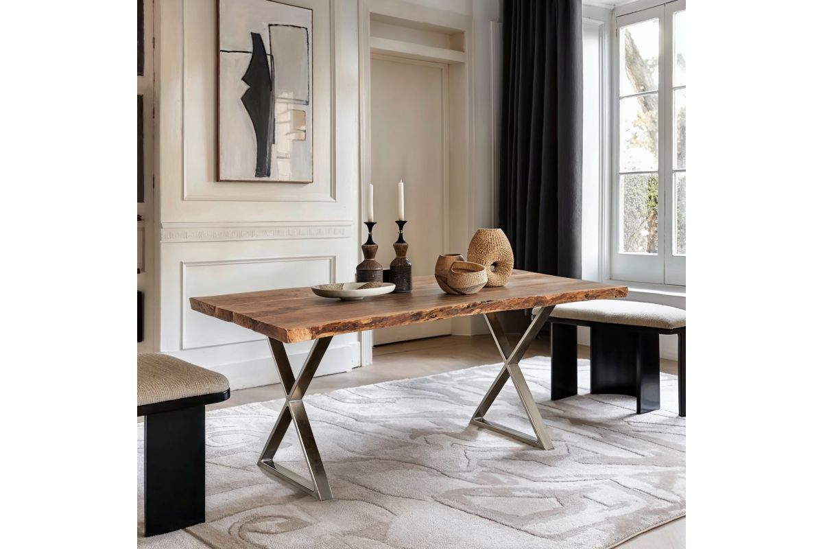 Raw beauty meets modern edge in the Sutherland Dining Table, where organic textures and industrial design come together effortlessly. Featuring a striking live-edge solid wood tabletop, each piece showcases unique grain patterns and natural imperfections for a one-of-a-kind look. The bold metal X-frame base adds a sleek contrast, offering both stability and a contemporary touch. Designed for gatherings, meals, and moments that matter, this table blends rustic warmth with modern sophistication—making it a statement piece in any dining space.