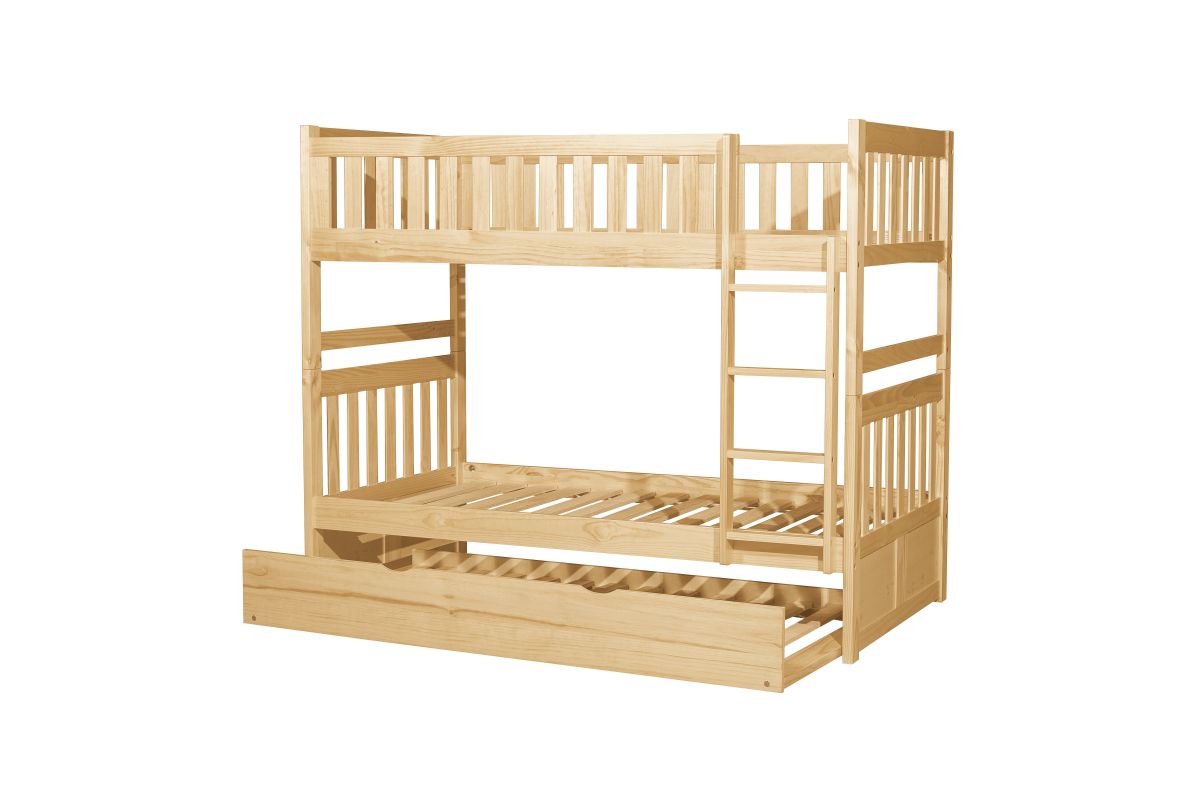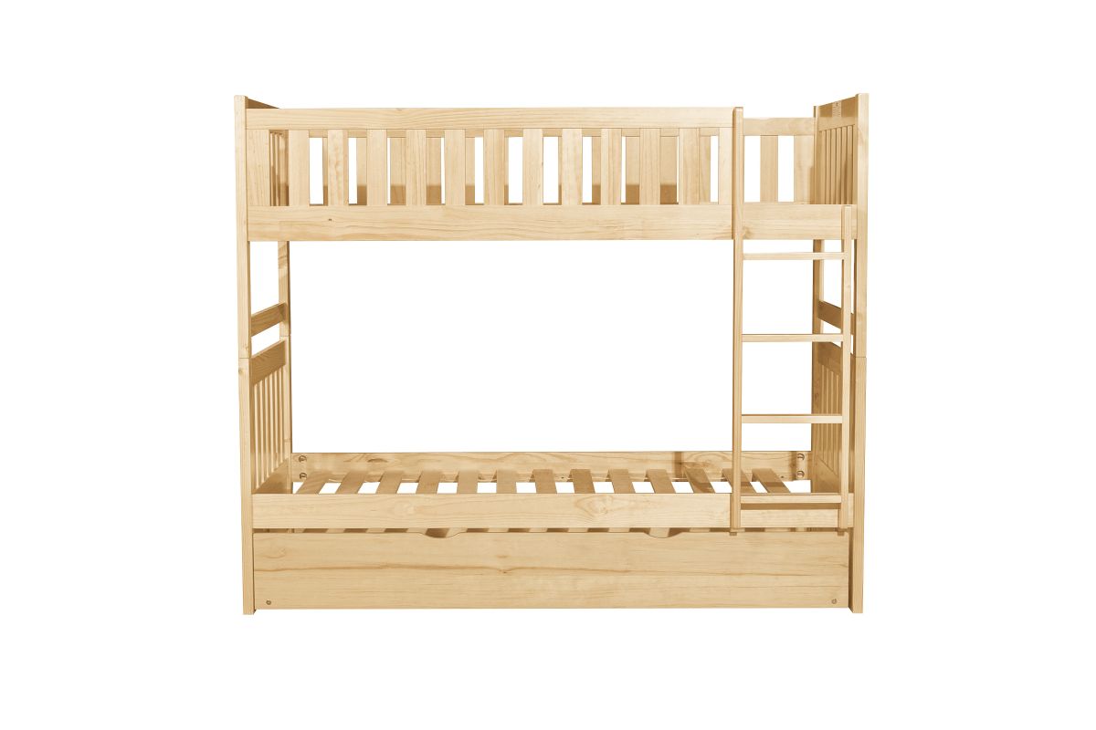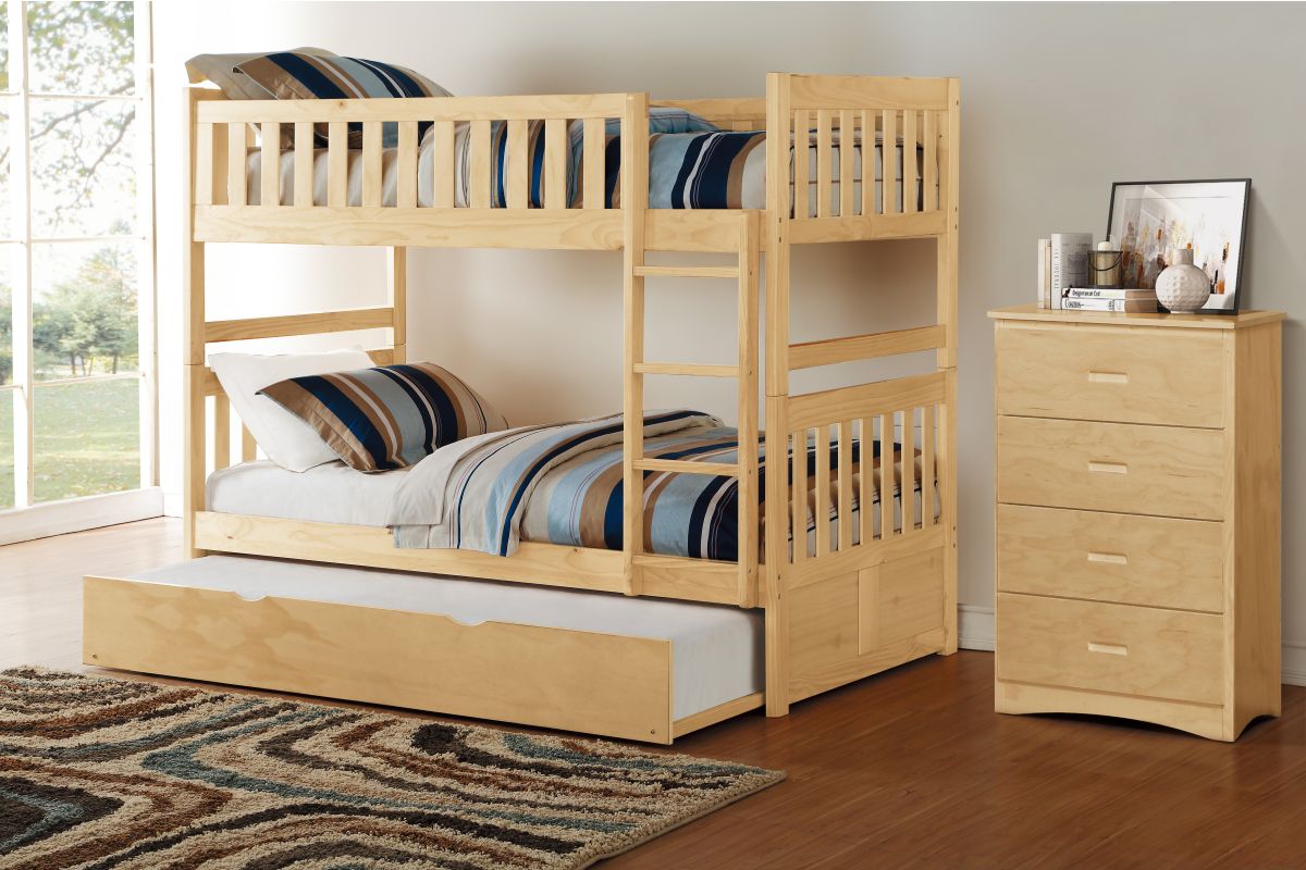Maximizing sleep space is achieved with the stylish Bartly Collection. This transitional twin over twin bunk bed includes a convenient twin trundle and coordinating storage chest, all finished in natural pine for a warm and versatile look perfect for shared bedrooms.