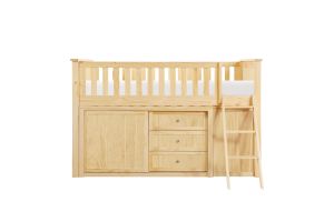 Maximizing sleep space is achieved with the stylish Bartly Collection. This transitional twin low-loft bunkbed is featured in a natural pine finish making it an appropriate choice for a number of youth bedroom settings. An angled ladder provides easy access to the loft platform.