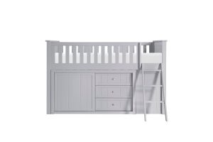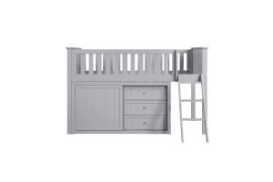 Maximizing sleep space is achieved with the stylish Orion Collection. This transitional twin low-loft bunkbed is featured in a gray finish making it an appropriate choice for a number of youth bedroom settings. An angled ladder provides easy access to the loft platform.