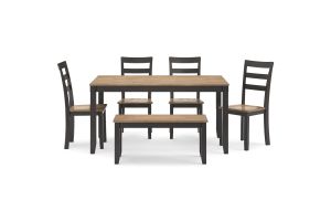 - Includes dining table, 4 chairs and bench