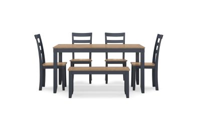 Complement your home’s simply relaxed sensibility with this dining table, chairs and bench. A dark blue hue offers a chic contrast to the natural wood tone, for a casual look that vibes with a variety of aesthetics. Whether you're sipping your morning coffee, settling in for dinner or working from home, this set is smartly designed for everyday comfort and style.
