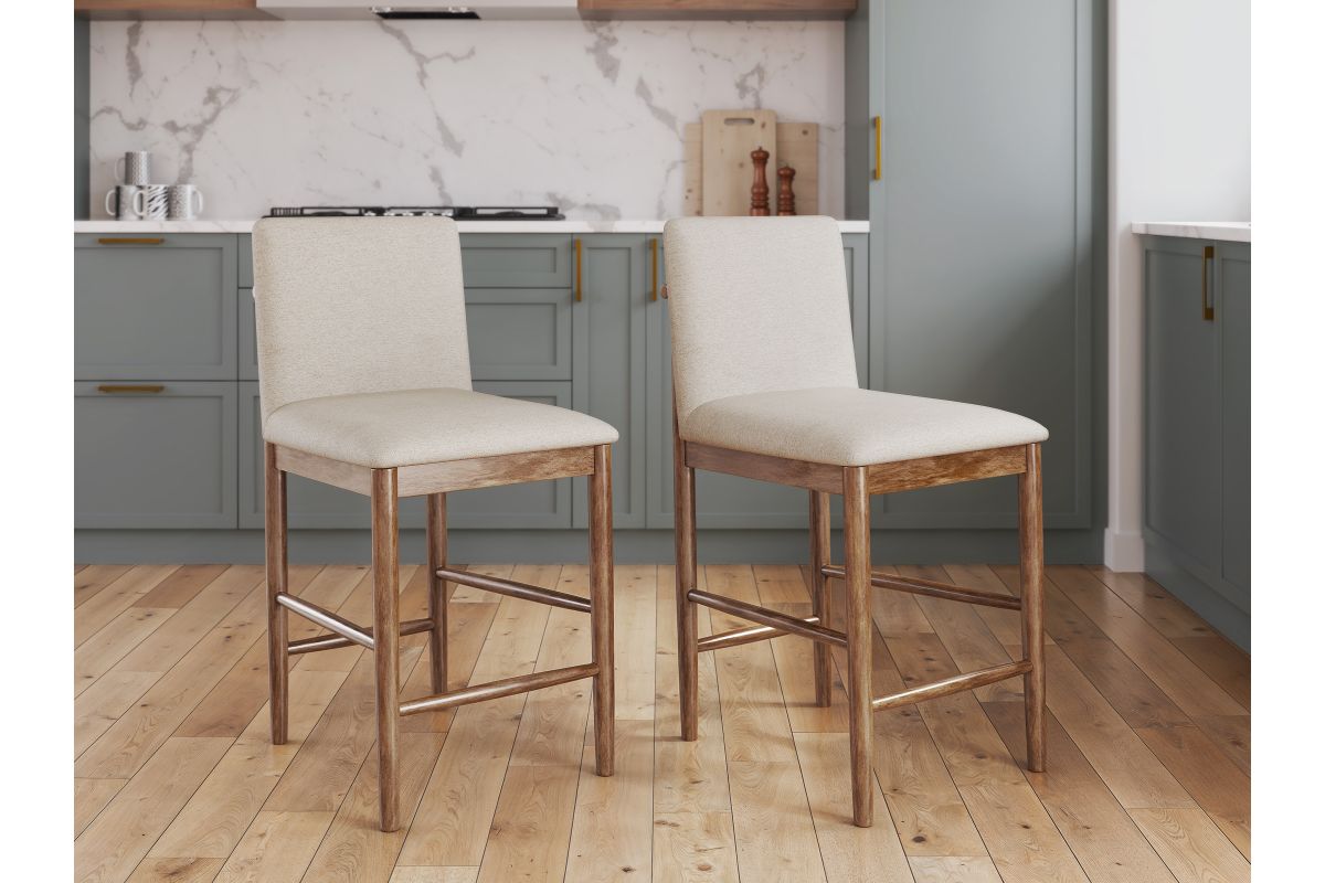 With its back-to-nature sensibility, this counter height bar stool is a natural fit for your well-edited space. A clean-lined design lets the beautifully organic quality and inherent luster of the wood shine through. From its textural upholstery to the refreshing light finish, it’s a piece that makes a statement by being remarkably understated.
