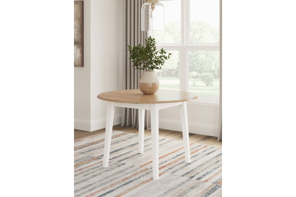 Complement your home’s simply relaxed sensibility with this drop-leaf dining table. A handsome dark brown hue offers a chic contrast to the natural wood tone, for a neutral look that vibes with a variety of aesthetics. When guests drop by, convert it from a space-saving two-seater to a larger table with the two drop leaves. Whether you're sipping your morning coffee, settling in for dinner or working from home, this table is smartly designed for everyday comfort and style.