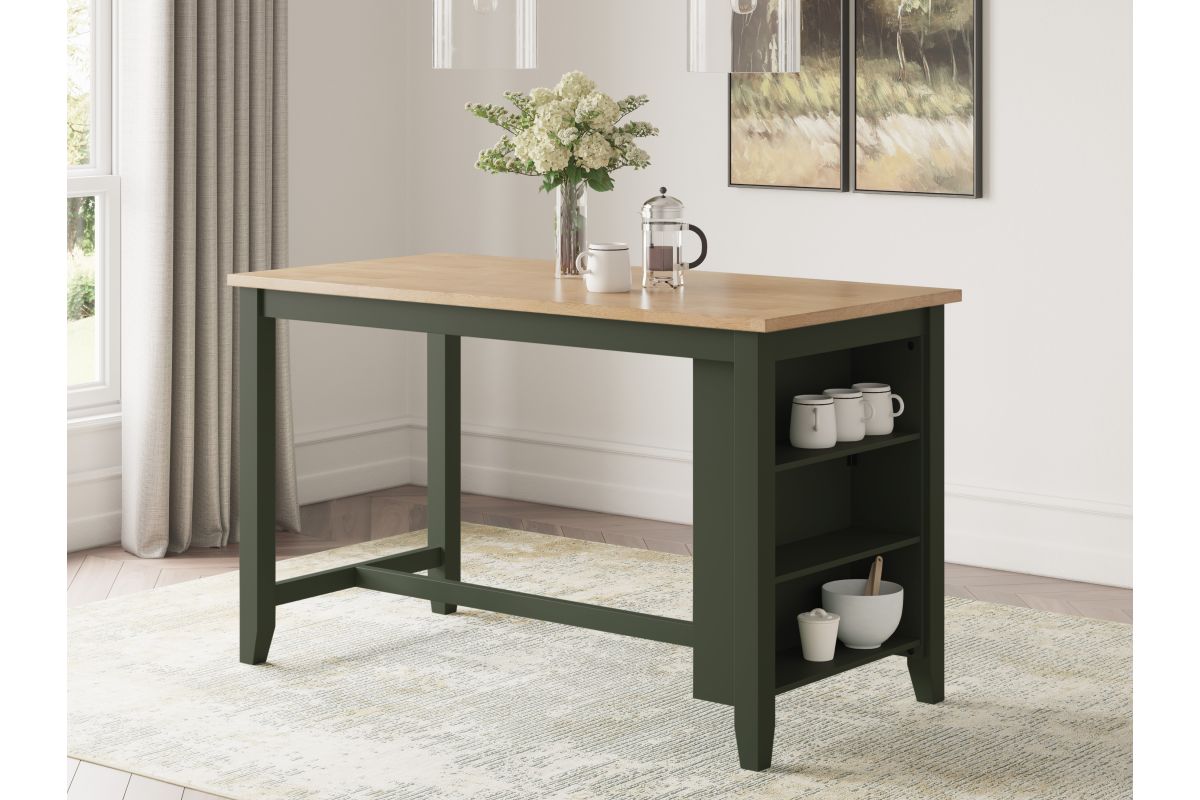 Complement your home’s simply relaxed sensibility with this counter height dining table. A dark blue hue offers a chic contrast to the natural wood tone, for a casual look that vibes with a variety of aesthetics. Built-in storage shelves keep kitchen and work accessories easily accessible. Whether you're sipping your morning coffee, settling in for dinner or working from home, this table is smartly designed for everyday comfort and style.