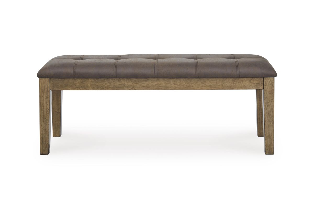 Looking for the ideal seating to host everything from casual family meals to larger gatherings? With an inviting light brown finish and a cushioned seat wrapped in supple faux leather, this handsome dining bench is the perfect piece for making wonderful memories. Cheers to that.