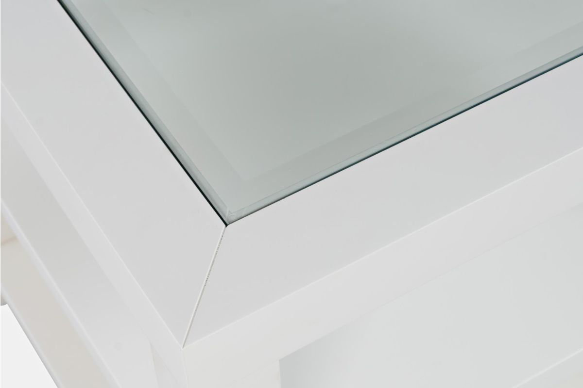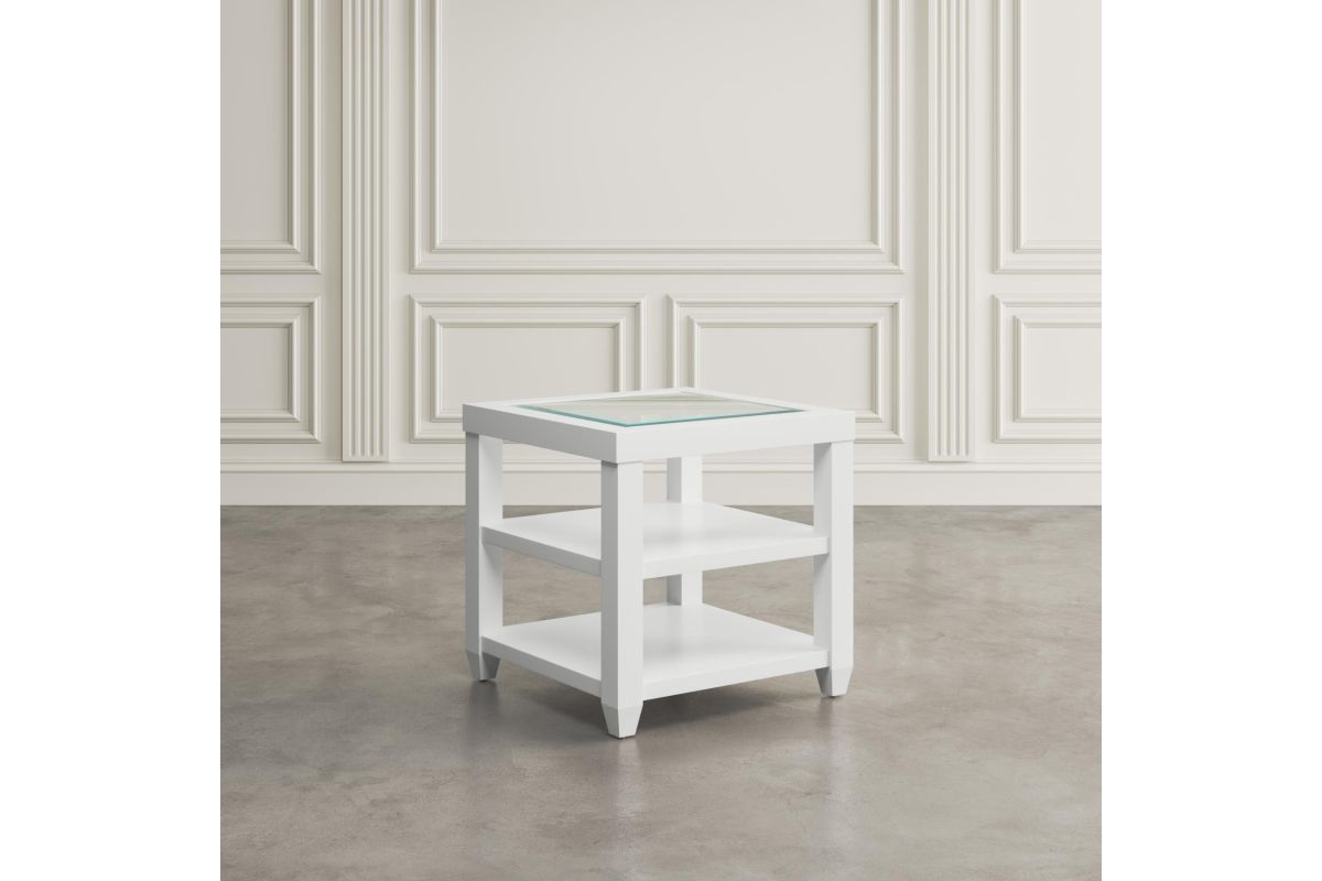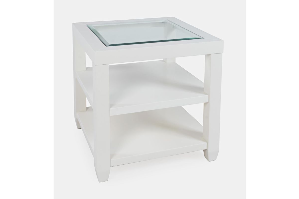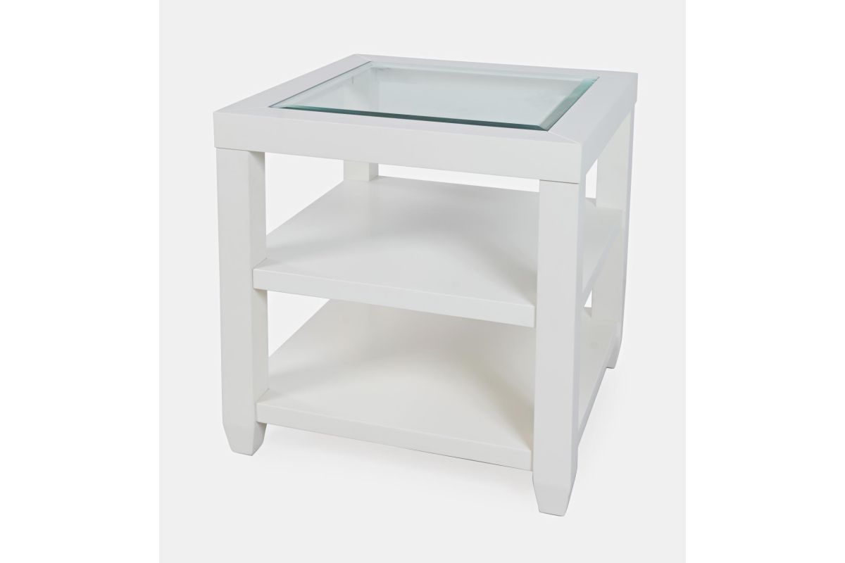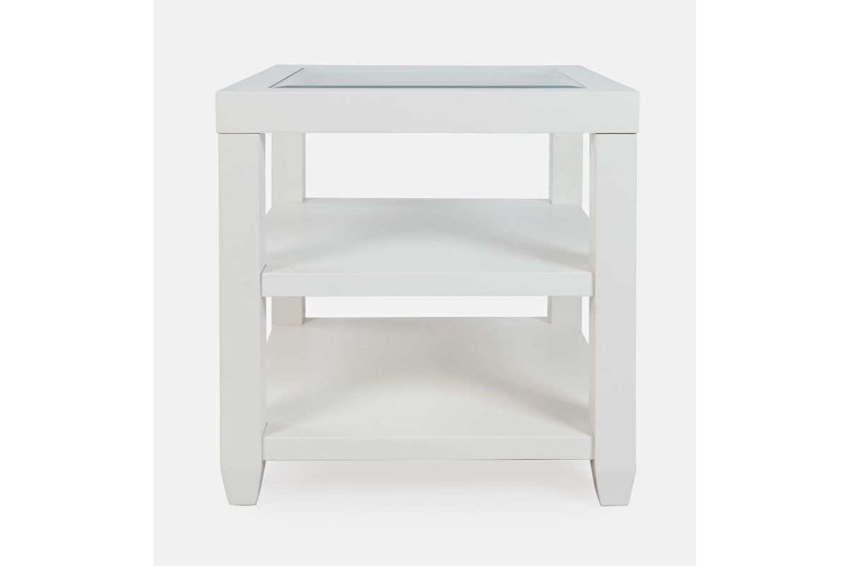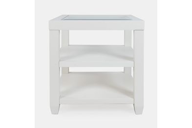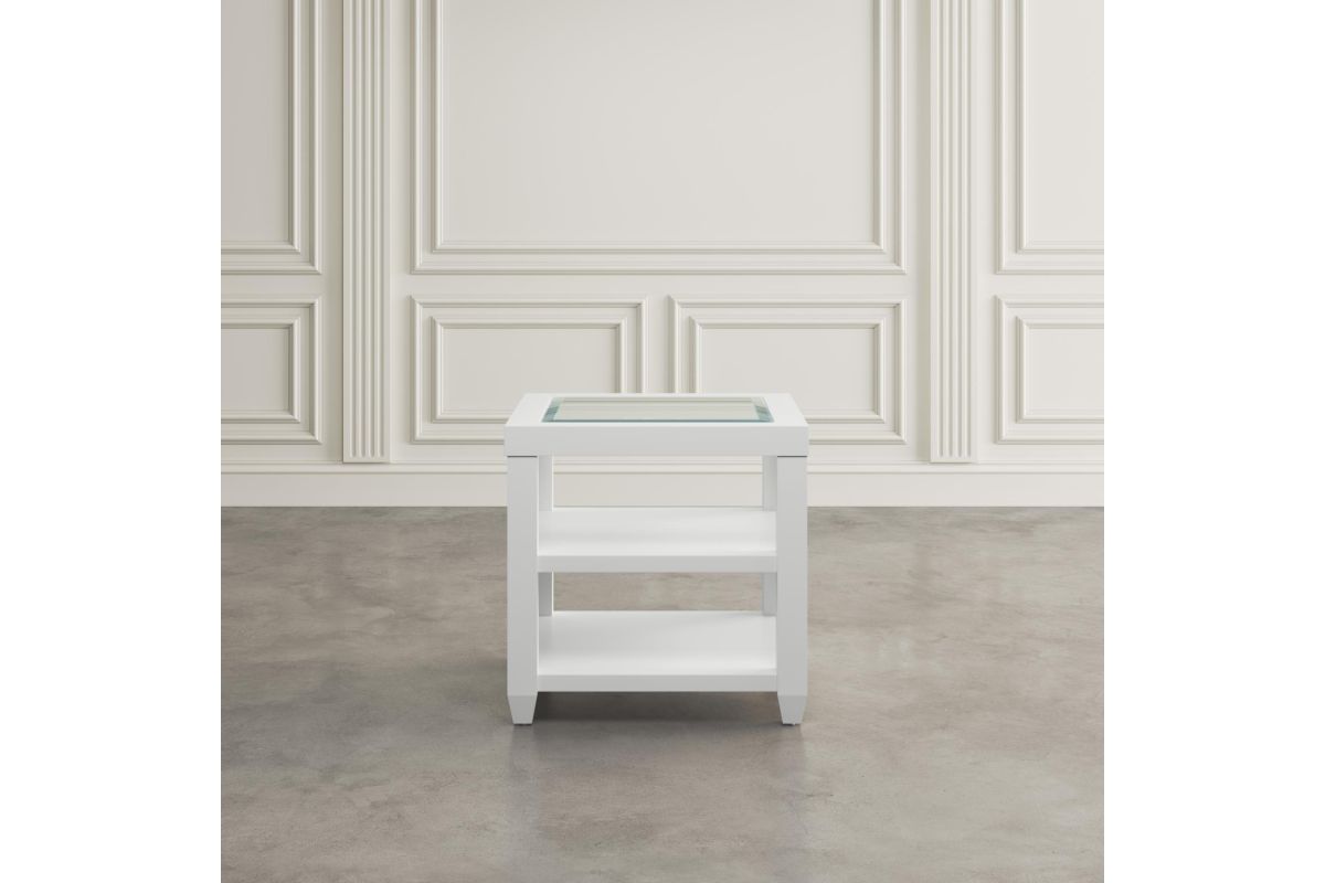 Urban Icon is a collection that combines modern accents with traditional looks and tempered glass tabletop inserts. This end table features two shelves for open storage or display.