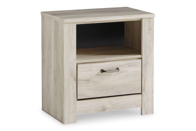 Your bedroom isn’t just a room. It’s a canvas. Express your farmhouse style with this nightstand. Wispy white finish over replicated oak wood grain brightens up the space with charm. Brushed nickel-tone handles with black edging finesse the piece with a bit of shine. Drawer is spacious and lined with faux linen laminate to hold your belongings with care. This clean-lined profile is the perfect authentic foundation for inviting decor.