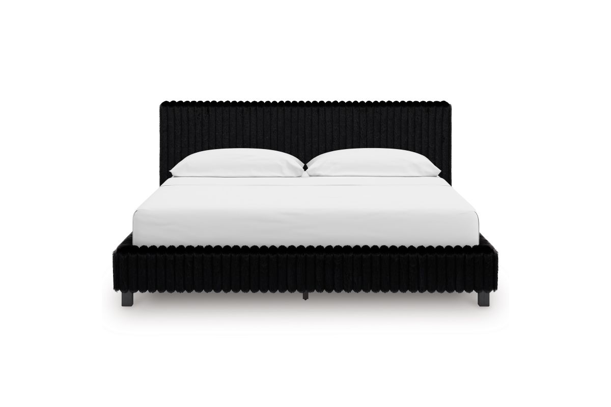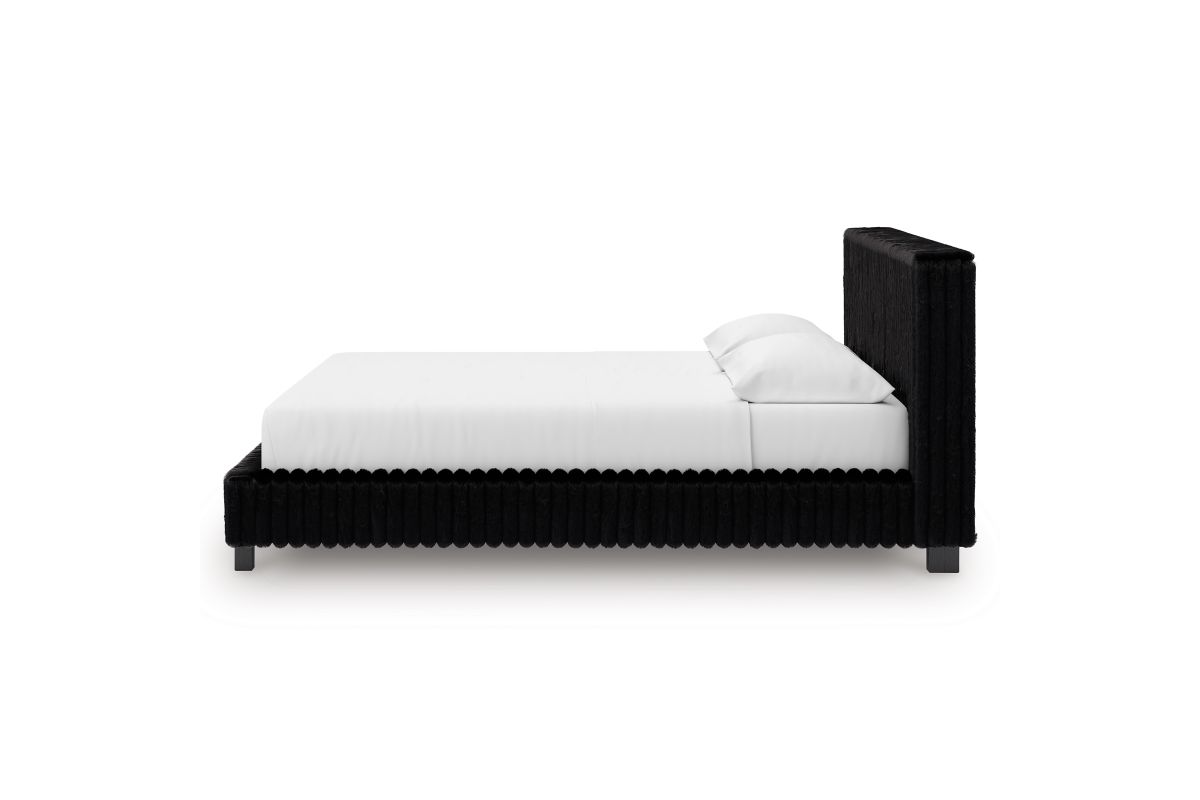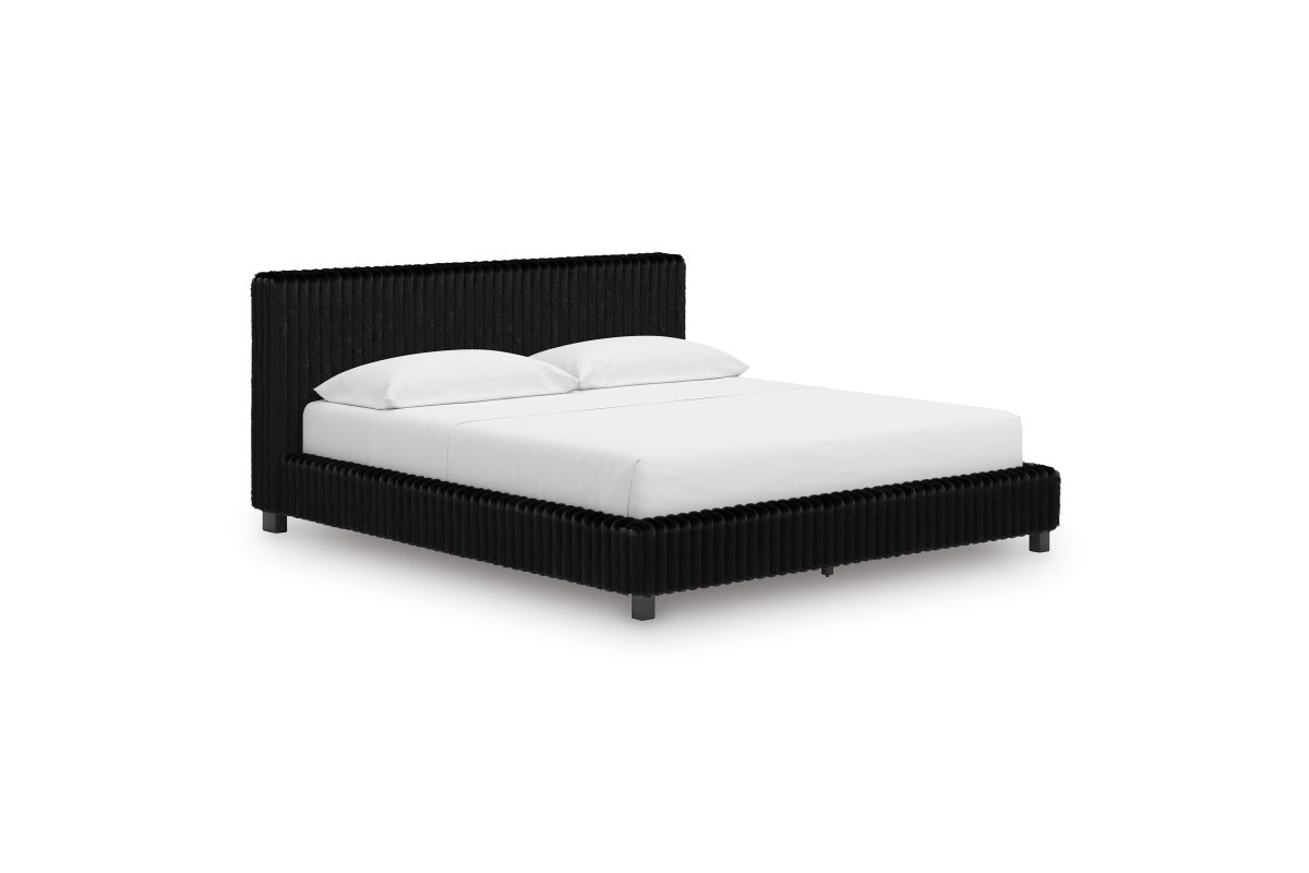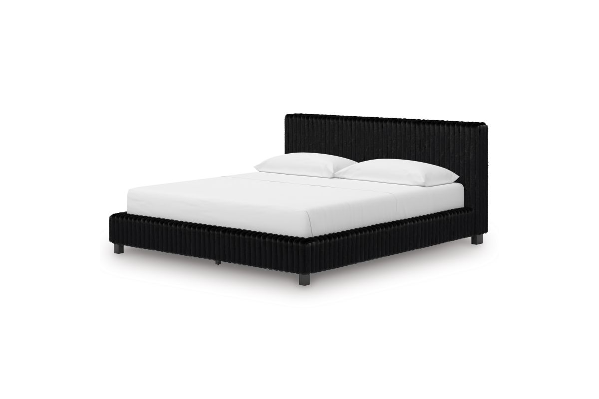 If casual and contemporary are your jam, you’re gonna love this California king upholstered bed. Covered from head to toe in a luxuriously soft black corded fabric, it has a chic flair that's sure to wake up your inner sanctum’s style. We’re talkin’ relaxed refinement.