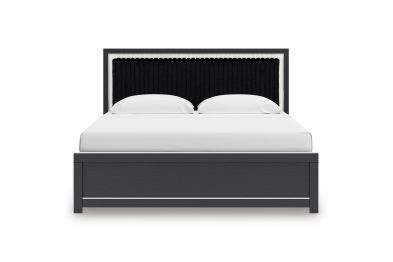 - Includes upholstered panel headboard, panel footboard and panel rails