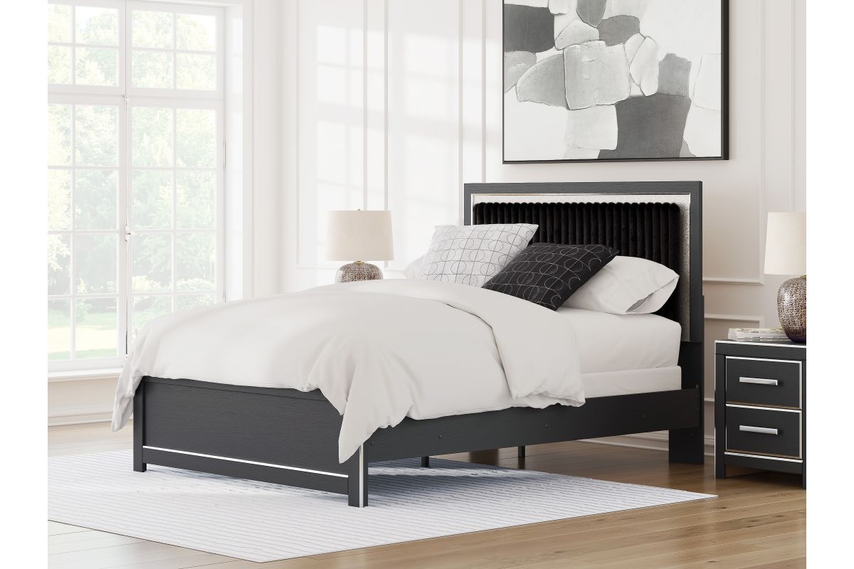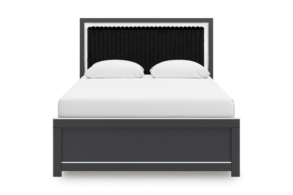 - Includes upholstered panel headboard, panel footboard and panel rails