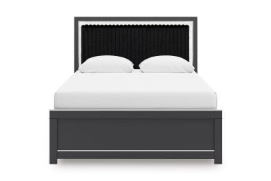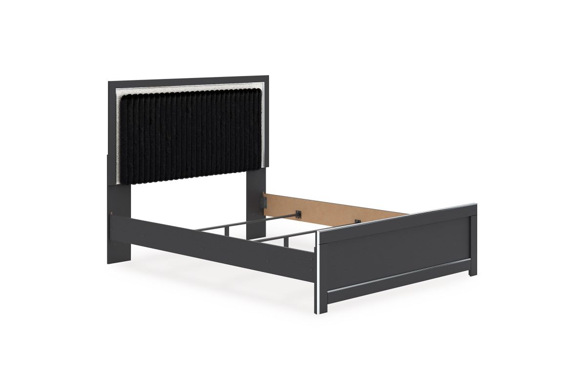 If glitz and glam are your jam, you’re gonna love this queen upholstered panel bed. Gleaming glitter and dazzling chrome-tone touches are paired with tufted black faux fur for a stunning pop of pizzazz. Loaded with chic flair and serious sparkle, it's a simply splendid way to wake up your inner sanctum’s style.