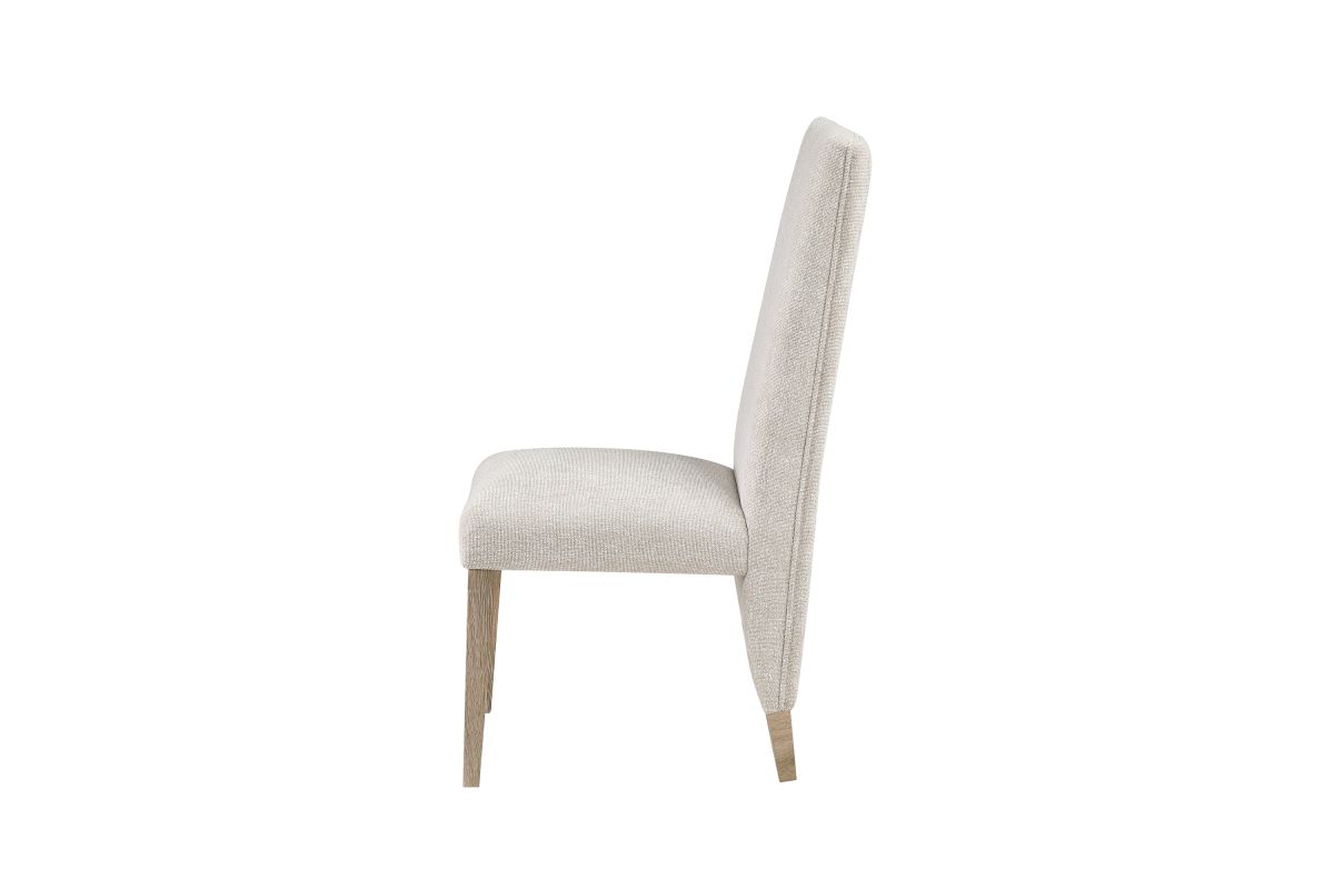 The D12 chairs are designed to provide both comfort and style. Upholstered in plush white and grey fabric, they offer a luxurious seating experience. The chairs' standout feature is the Chanel tufting on their backs, which adds a touch of sophistication and creates an eye-catching focal point.
