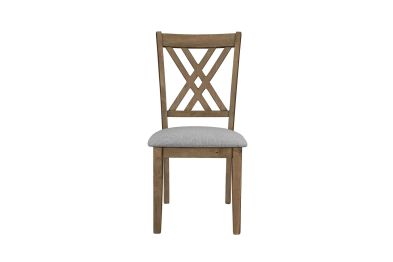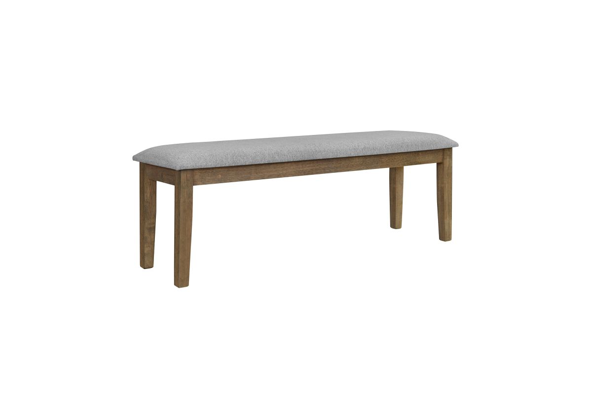 Accompanying the table are matching dining chairs and a bench upholstered in soft grey fabric, providing comfortable seating with a modern, understated look. The harmonious combination of warm brown tones and cool grey upholstery creates a balanced and inviting atmosphere, perfect for everyday meals or special occasions. The D2974 Collection offers versatile style, functional design, and quality materials for a sophisticated dining experience.