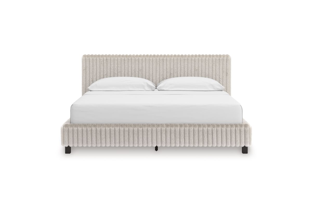 If casual and contemporary are your jam, you’re gonna love this California king upholstered bed. Covered from head to toe in a luxuriously soft gray corded fabric, it has a chic flair that's sure to wake up your inner sanctum’s style. We’re talkin’ relaxed refinement.
