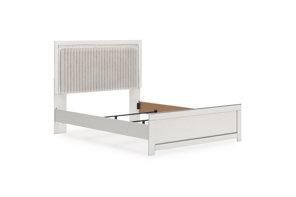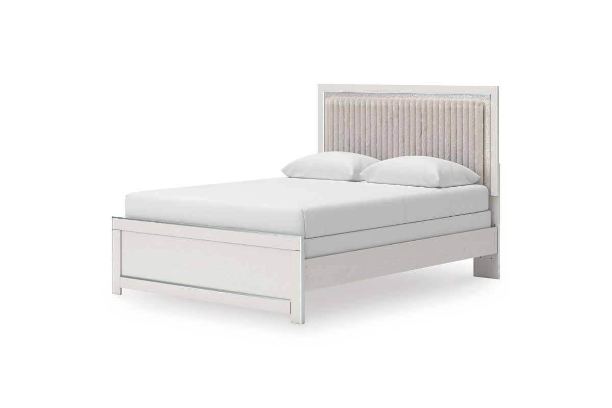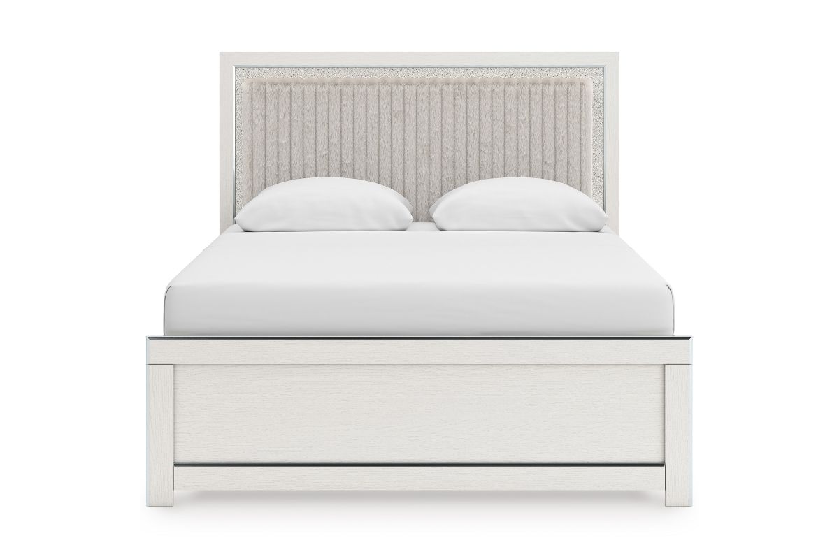 If glitz and glam are your jam, you’re gonna love this queen upholstered panel bed. Gleaming glitter and dazzling chrome-tone touches are paired with tufted gray faux fur for a stunning pop of pizzazz. Loaded with chic flair and serious sparkle, it's a simply splendid way to wake up your inner sanctum’s style.