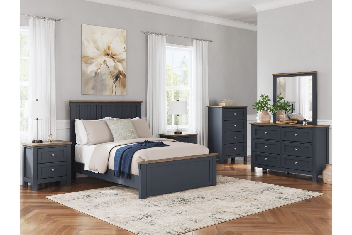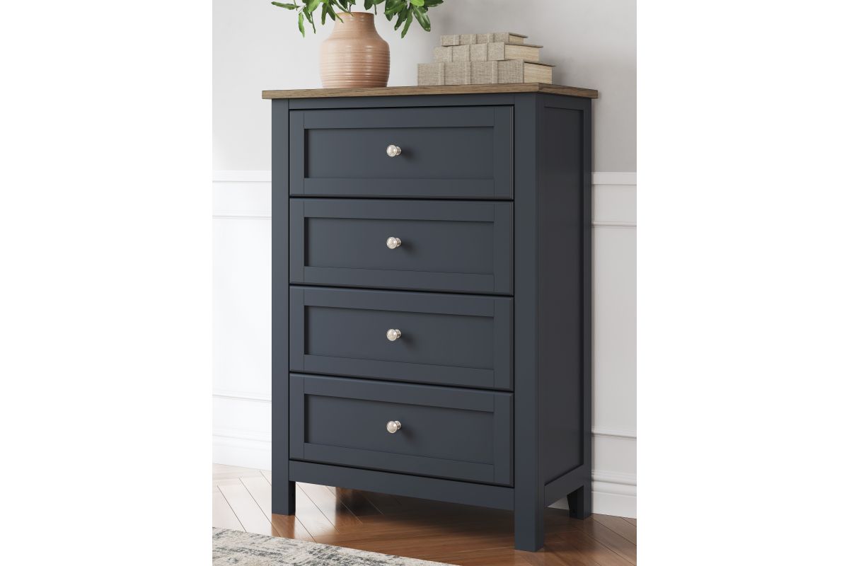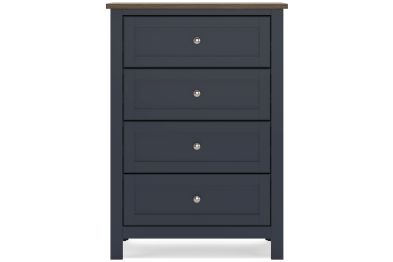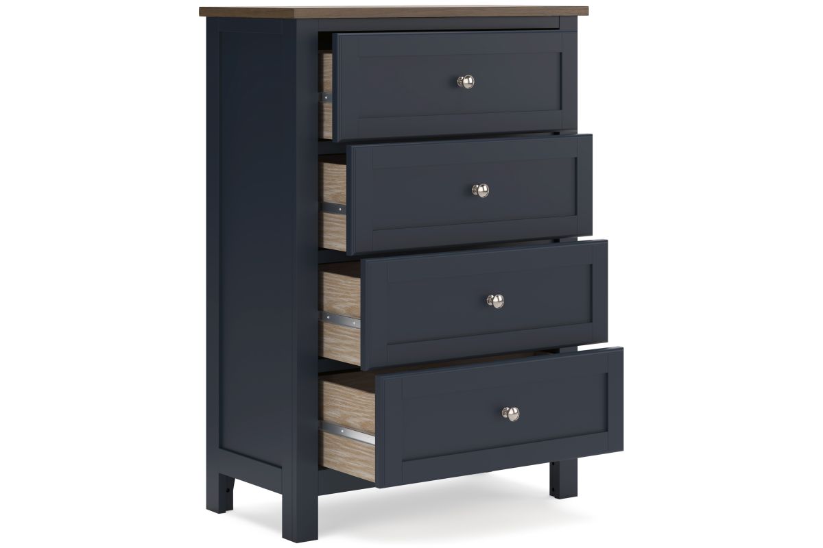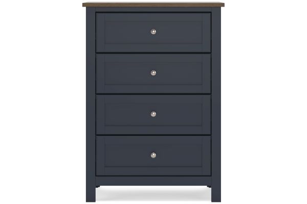 Add homespun charm to your restful retreat. A modern take on a timeless silhouette, this chest of drawers pairs a dark slate blue finish with a light brown top. Drawer fronts and legs in a classic Shaker style bring an air of beautiful simplicity to the bedroom. Whether it's part of a charmingly curated guest suite or a casually carefree kids room, this chest is a welcome addition.