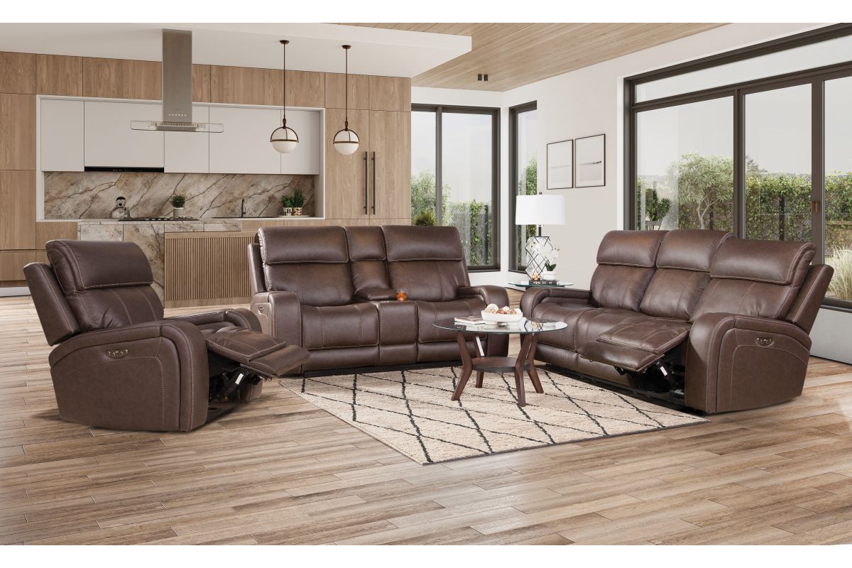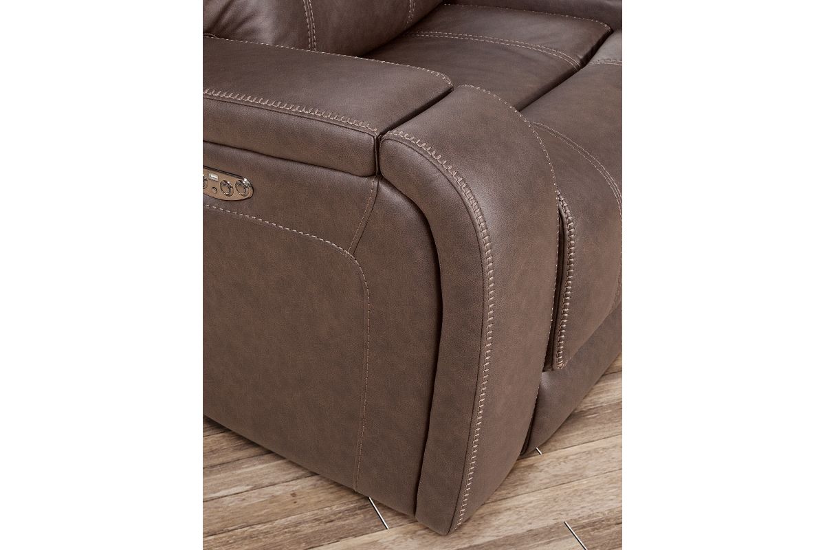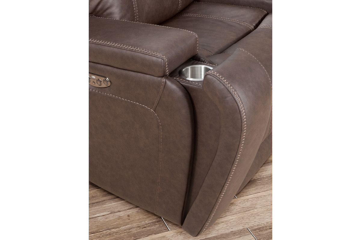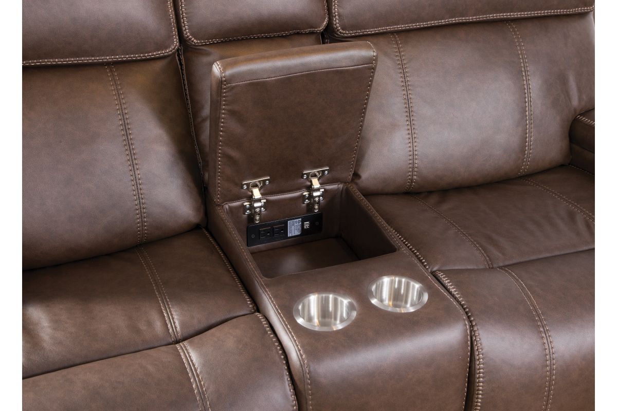 Scorpio Brown Leather Dual Power Reclining Console Loveseat