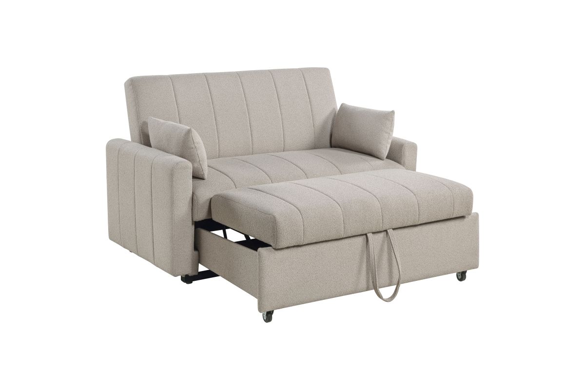 - Easy pull-out mechanism converts the sofa into a bed with built-in casters for smooth operation