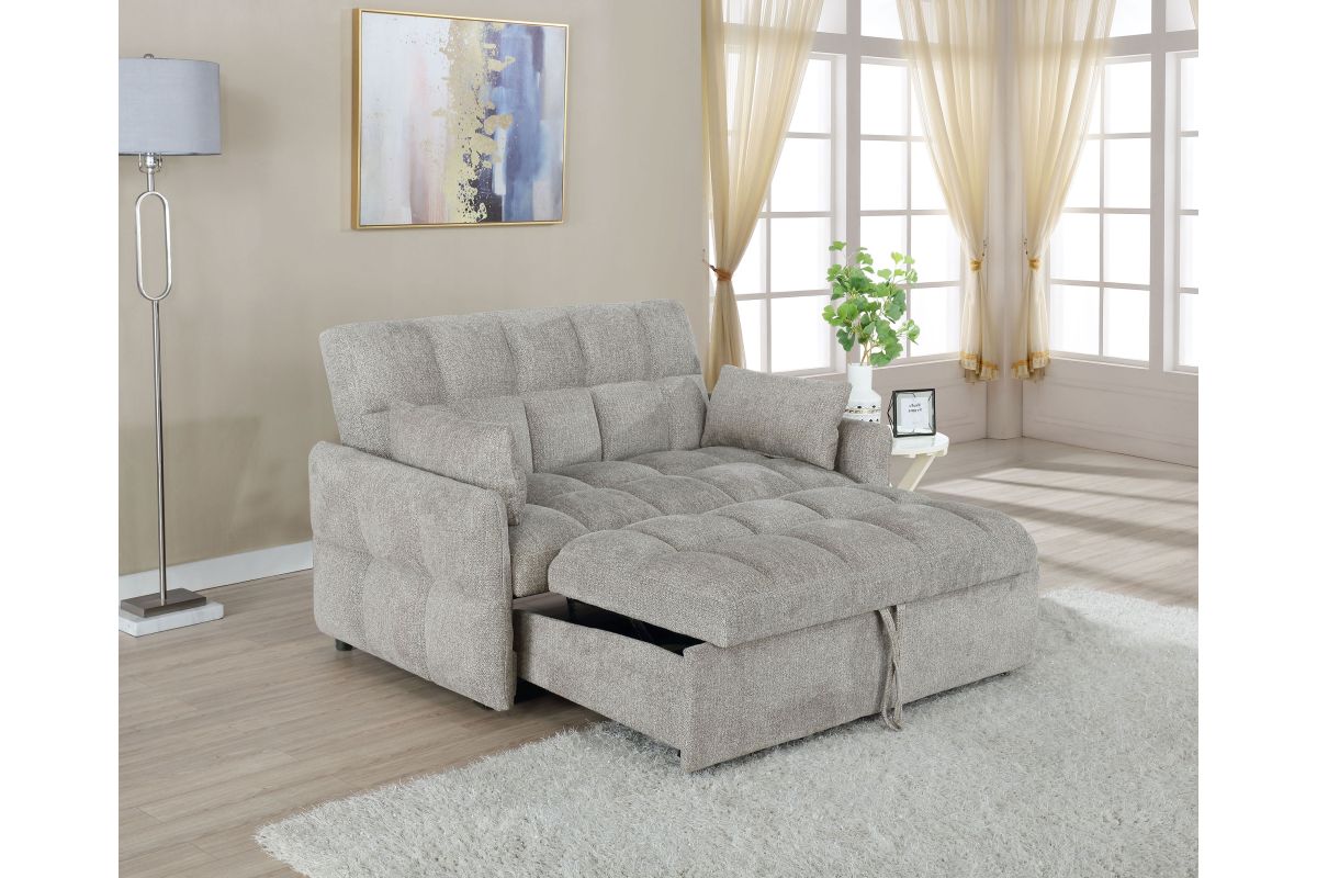 - Pull-out sleeper mechanism extends the seat into a comfortable guest bed