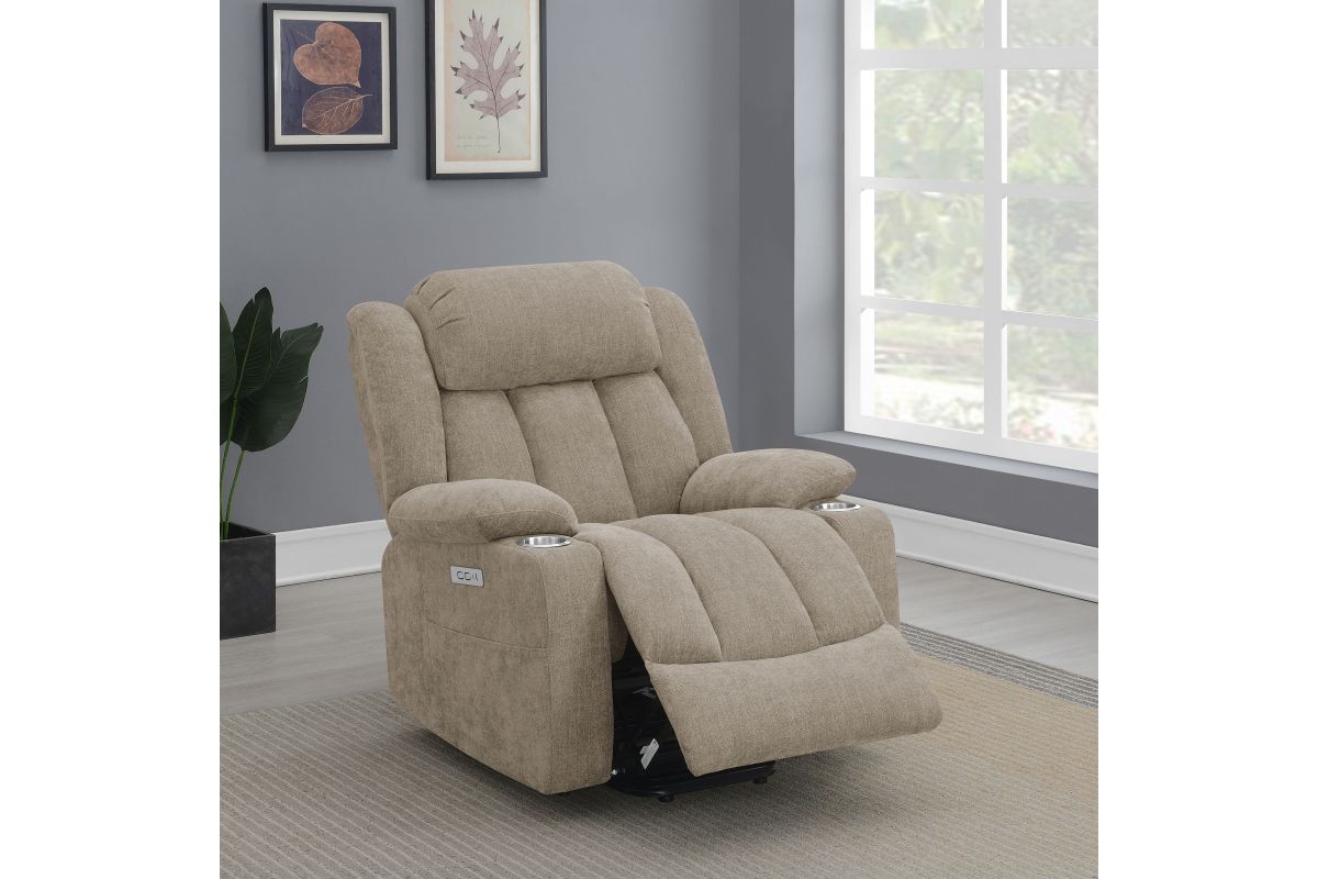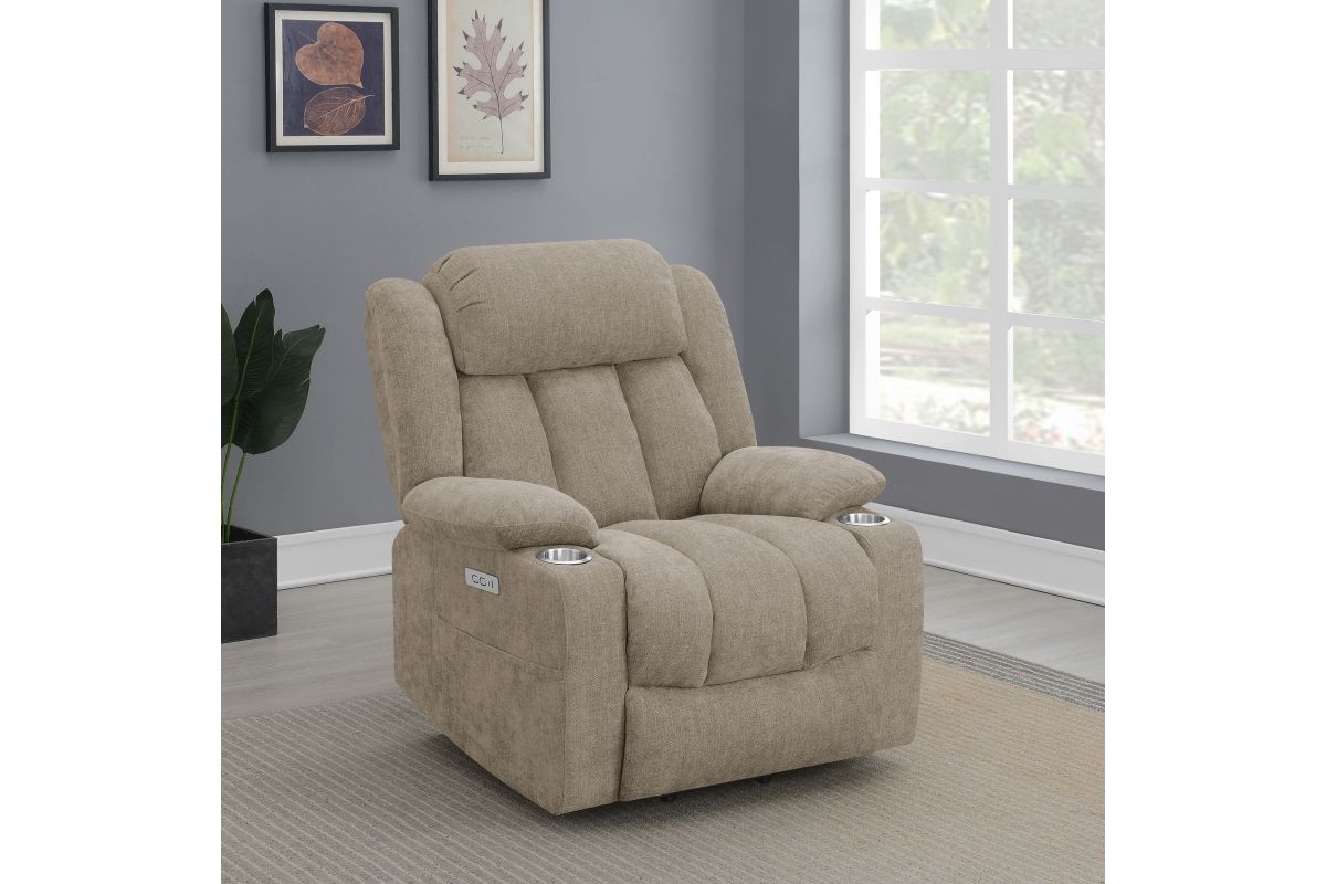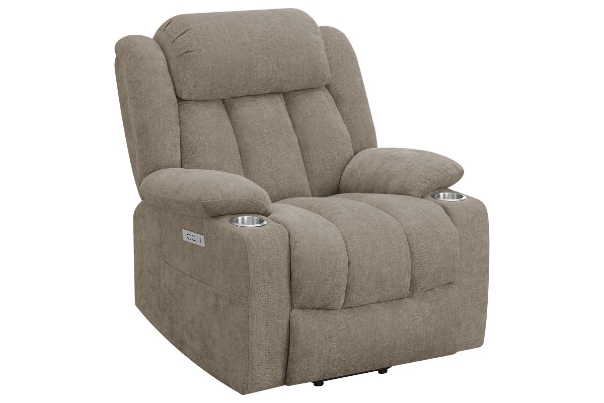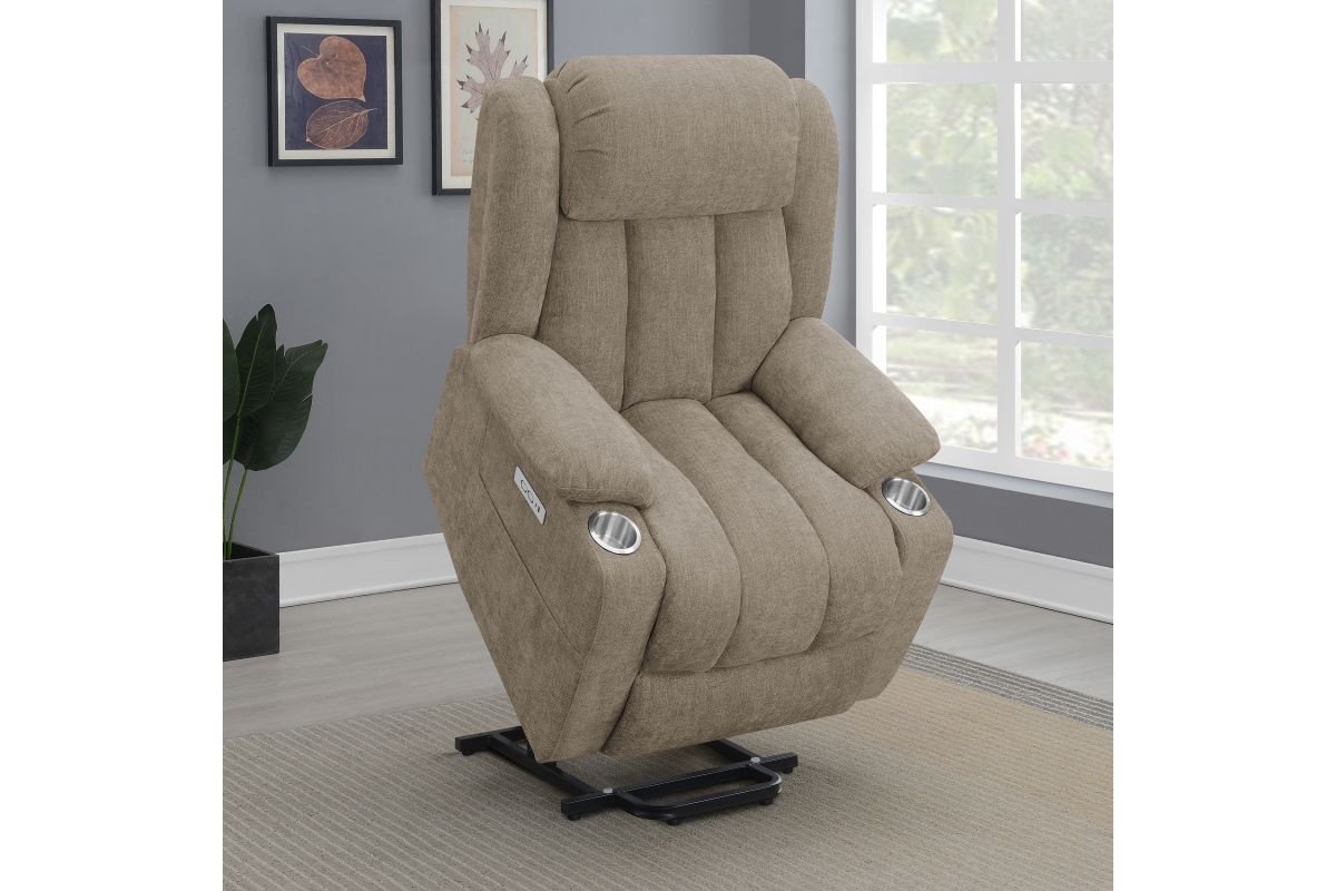 Deliver exceptional comfort and convenience with a modern power lift recliner that allows you to kick back and relax while also assisting you in getting back on your feet. Its plush, overstuffed look is inviting in a living room or den, while contour tufting creates exceptional support for your whole body. The recliner is operated with a power panel that includes simple buttons and a built-in USB port for easy access. The power panel is on the right side when seating and is paired with a soft pocket, perfect for tucking reading materials or a puzzle book. Soft upholstery, pillowtop arms and two cupholders add to the inviting look and feel of this charming recliner.