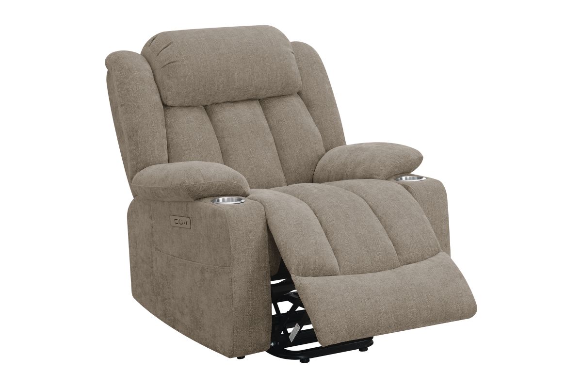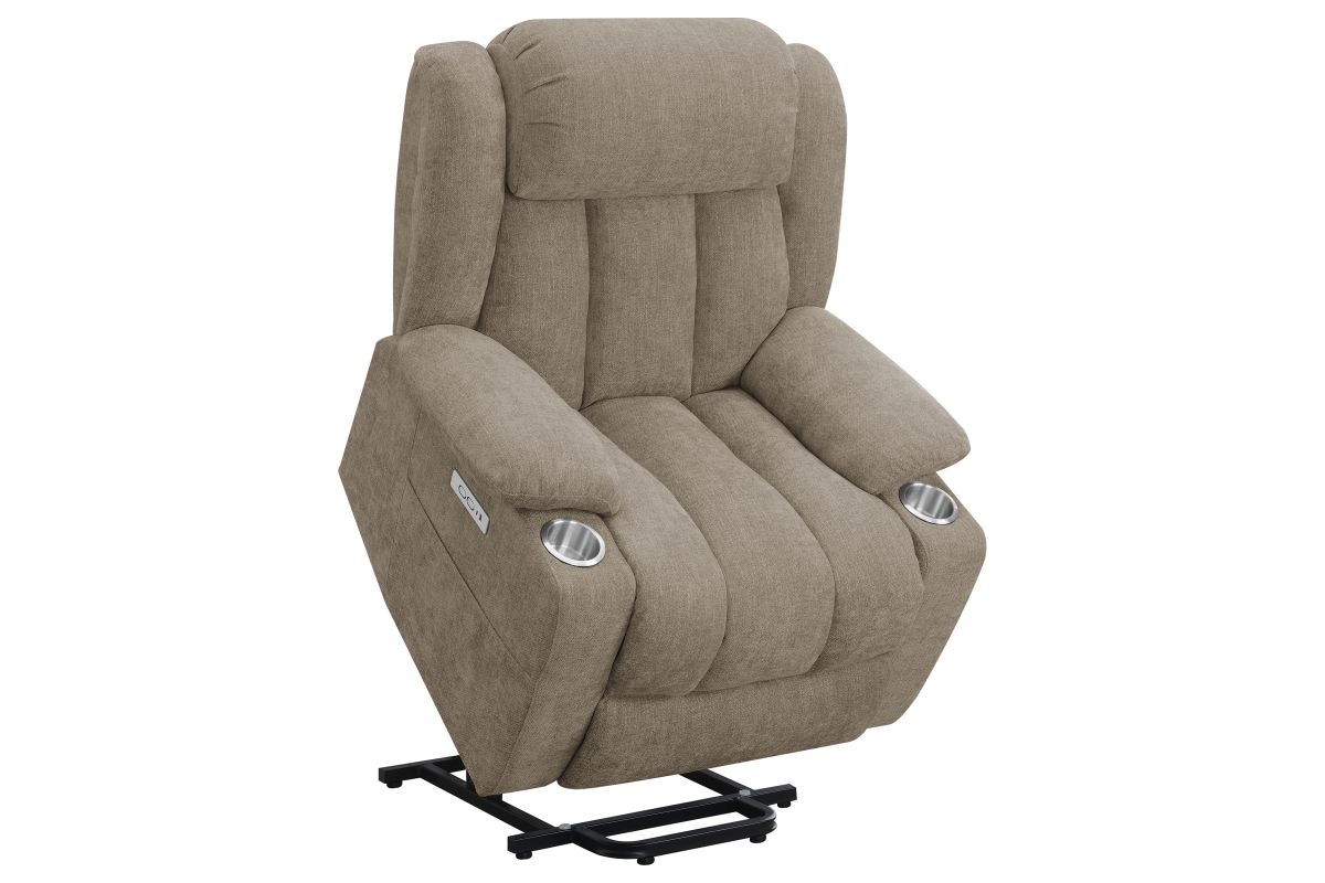 - A modern power lift recliner includes cupholders and will assist in relaxation