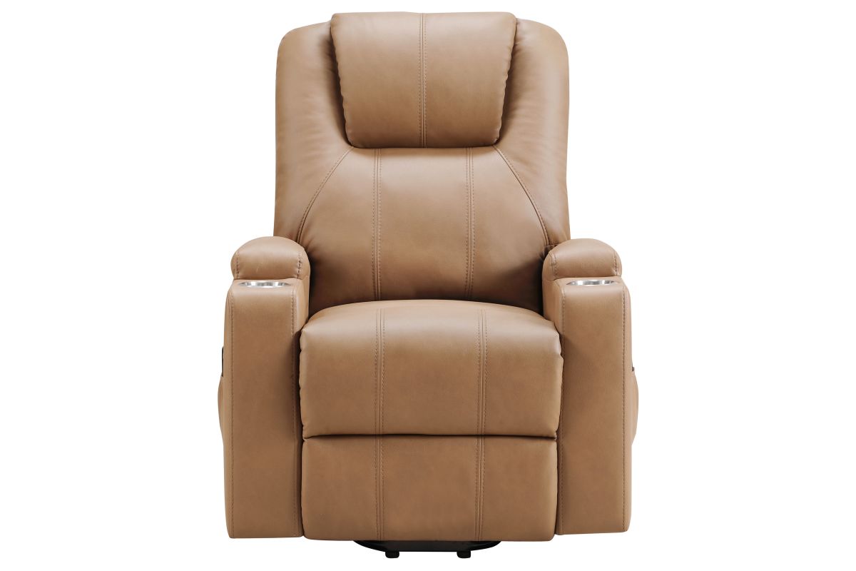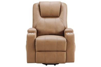 - Power lift recliner with heat and massage functions offers comfort and support with ergonomic contouring