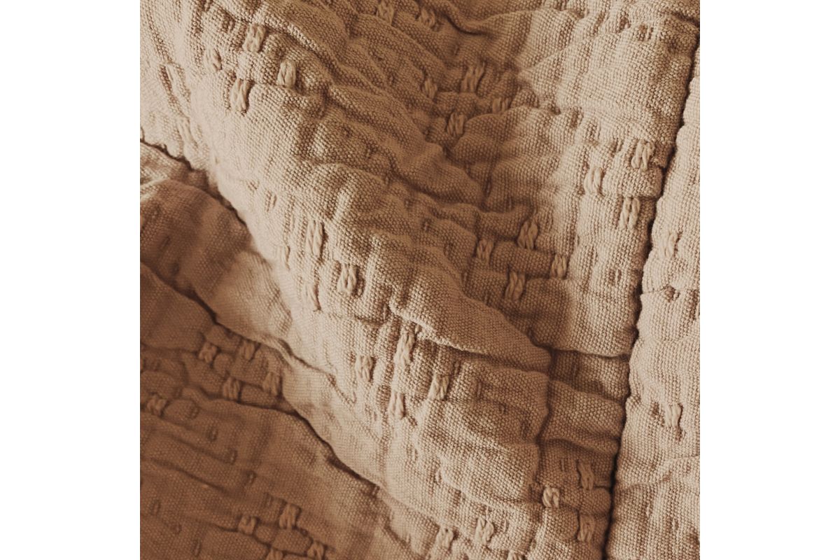 A warm palette and subtle texture come together in Purecare's breathable cotton coverlet inspired by The Wave in the Southwest United States. Organically tinted from EarthColors® dyes and finished with a relaxed yet playful wavy pattern, each coverlet inspires a handmade look and feel, offering the perfect finishing touch to your sleep space.