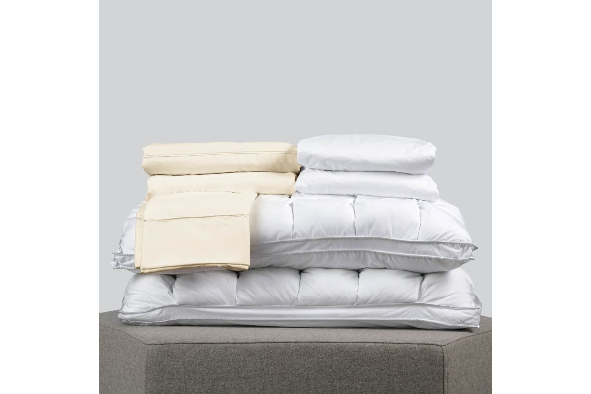 Ideal for sleepers on the lookout for simple essentials with a classic look and feel. Our Classic Bundle includes: (2) pillows, (1) sheet set, and (1) 5-sided protector.
