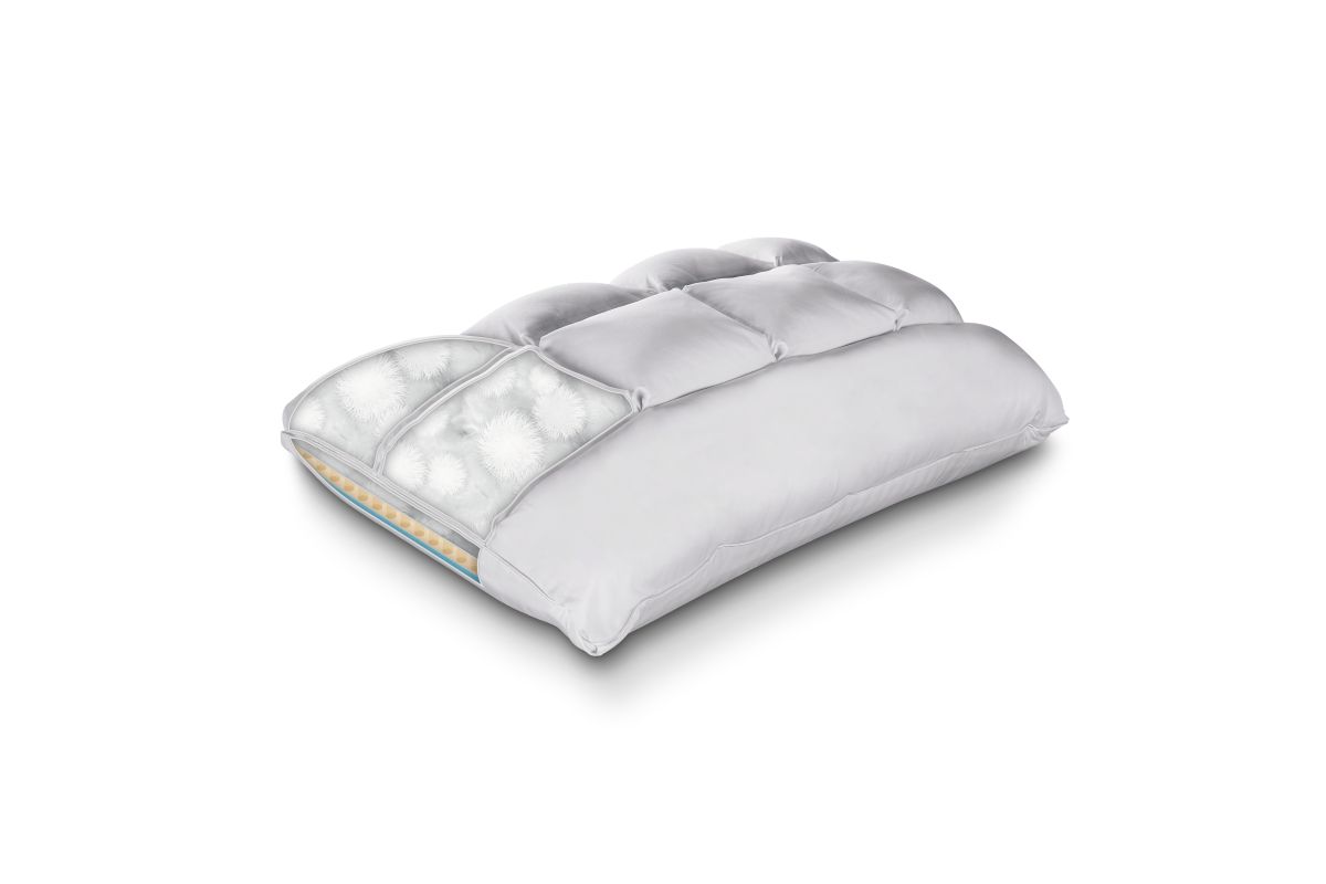 Explore the Cooling SoftCell® Chill Pillow: - Reversible, 2-in-1 construction: Enjoy the plush comfort of down without the allergen drawbacks with our Identically Down™ filled SoftCell® pillow top. For a completely different feel, flip the pillow over for the reserved response of gel-coated memory foam. - Adjustable loft: Easily adjust the height of the SoftCell® pillow by inserting or removing the Identically Down™ pillow featured in the center of the pillow. - Added Neck Support: The singular, elongated SoftCell® features additional Identically Down™ fill for contoured neck and shoulder support.