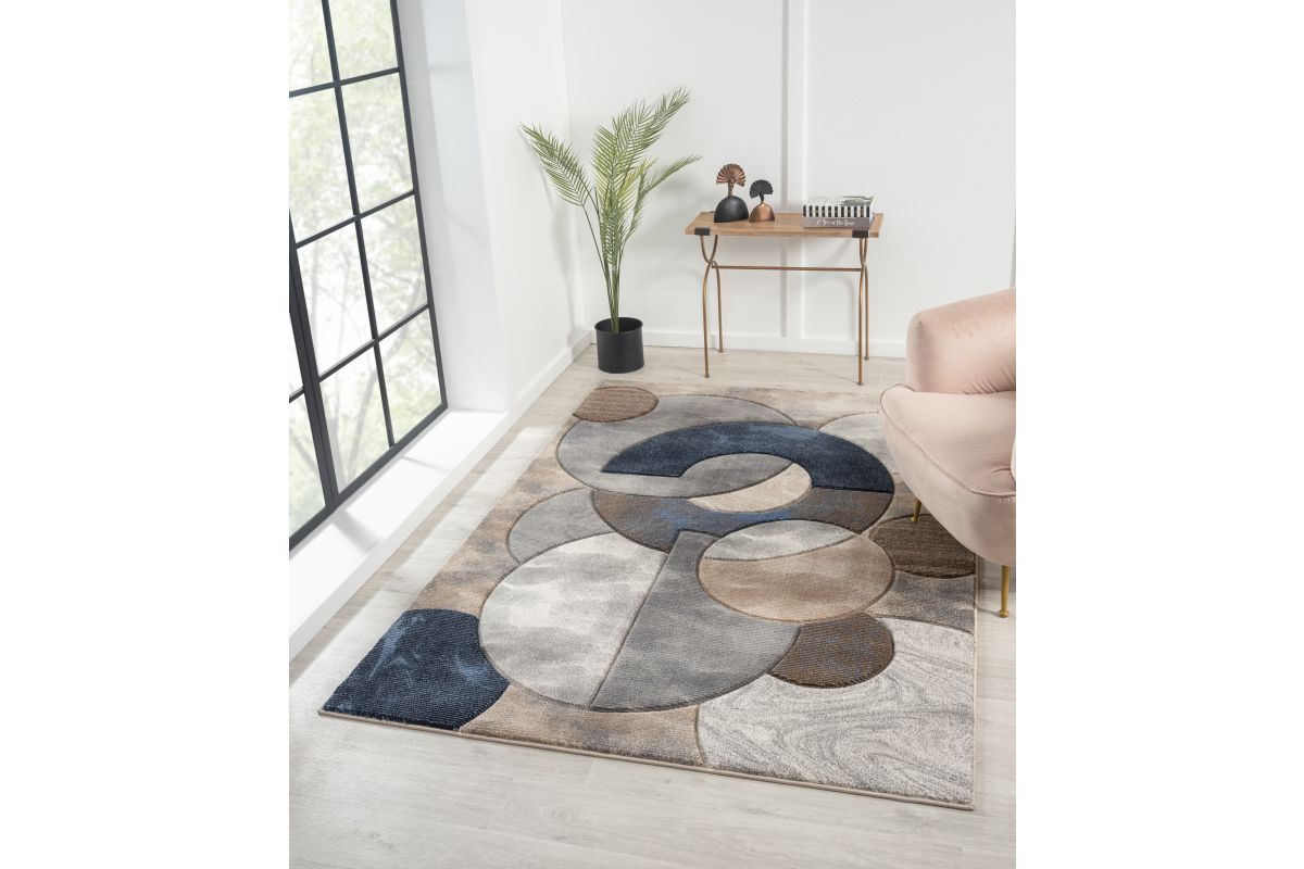 Transform your space with the striking modern designs of the Alexia Collection. Each rug features bold geometric patterns, layered textures, and a rich palette of Brown, Grey, Light Brown, Blue, and Black. This rug is perfect for contemporary, transitional, or minimalist interiors.