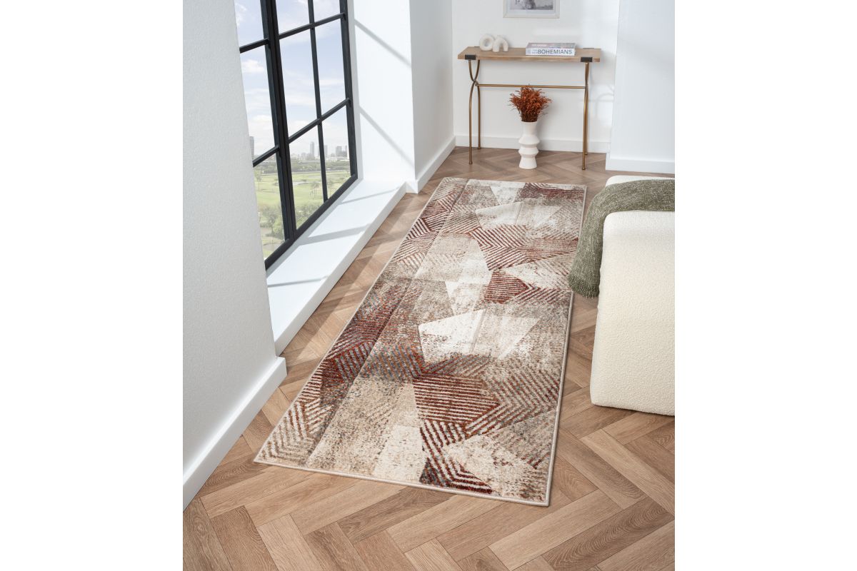 Transform your space with the striking modern designs of the Alexia Collection. Each rug features bold geometric patterns, layered textures, and a rich palette of Brown, Grey, Light Brown, Blue, and Black. This rug is perfect for contemporary, transitional, or minimalist interiors.