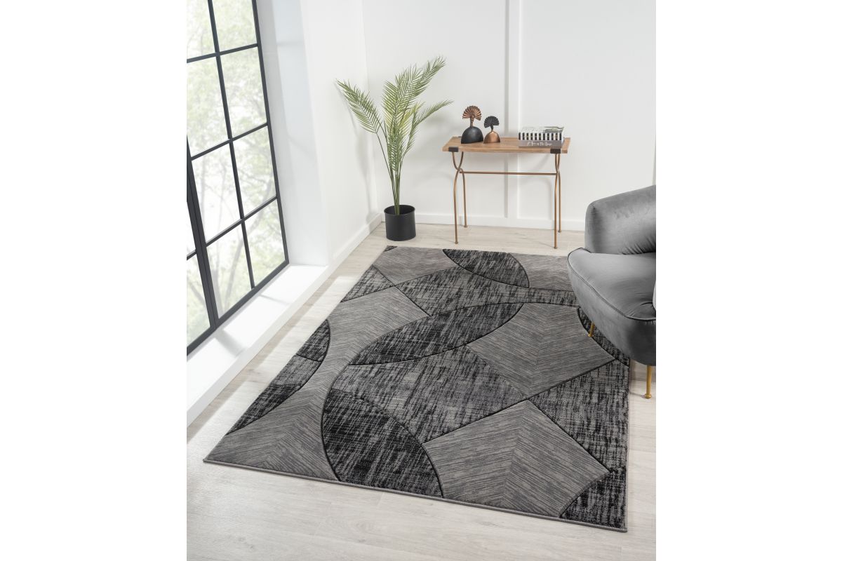 Transform your space with the striking modern designs of the Alexia Collection. Each rug features bold geometric patterns, layered textures, and a rich palette of Brown, Grey, Light Brown, Blue, and Black. This rug is perfect for contemporary, transitional, or minimalist interiors.