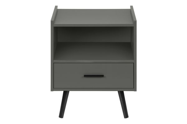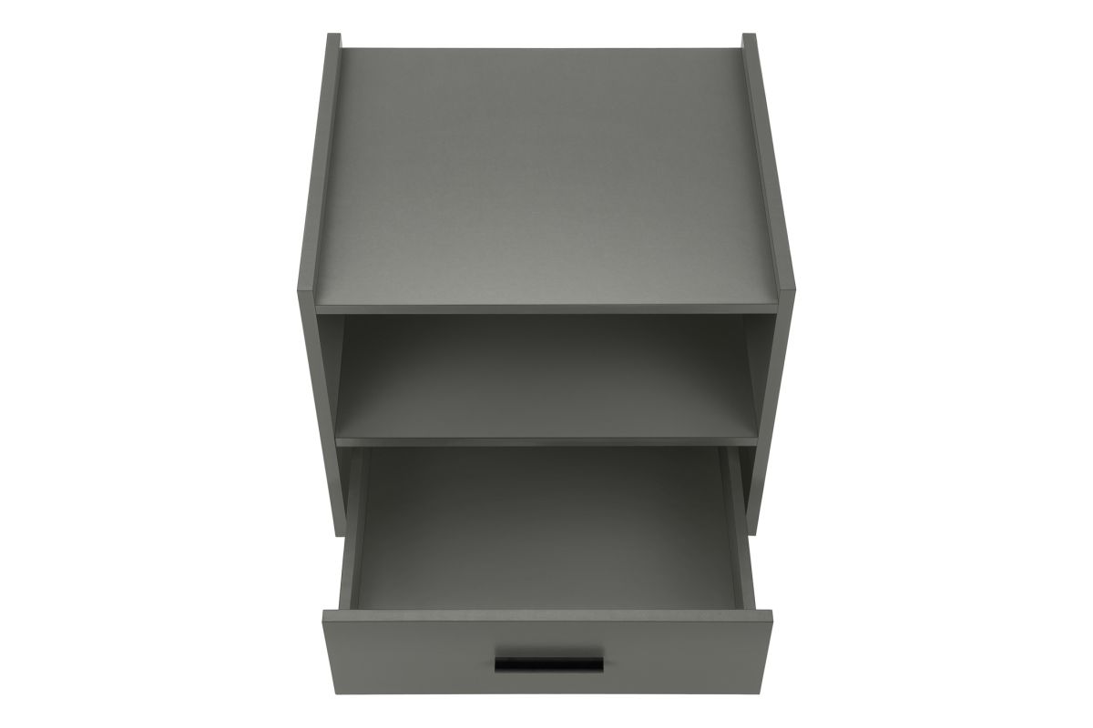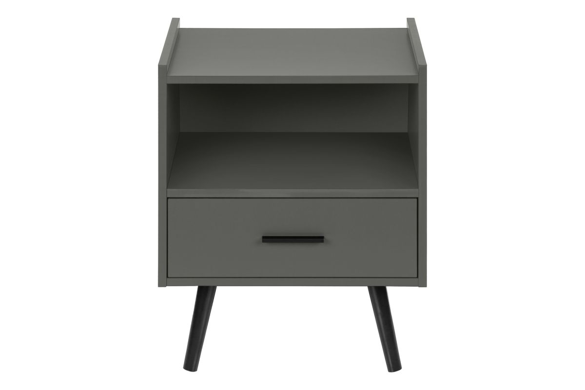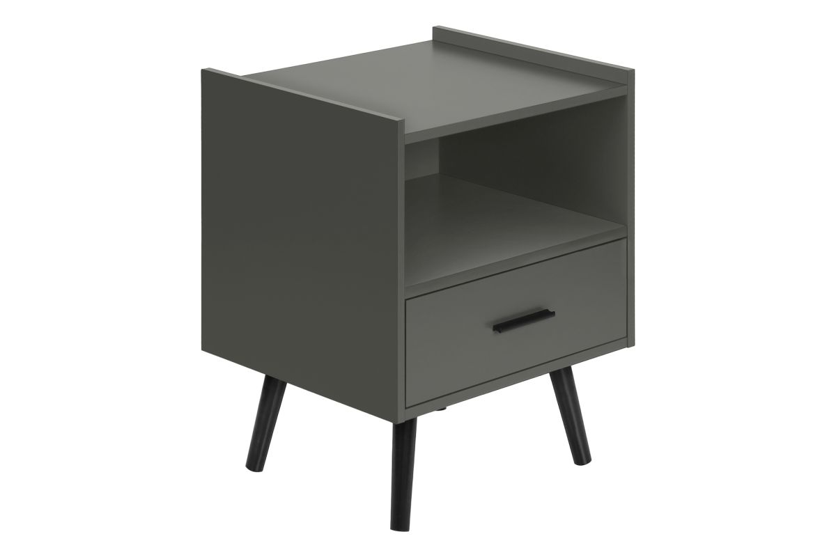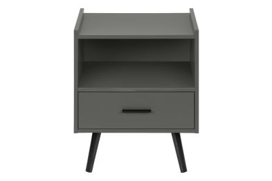 Transform your space with this sleek and stylish 24 high accent table! With a modern design, this grey laminate end table is the perfect addition to any contemporary bedroom as a nightstand or living room, combining functionality with fashionable style. Crafted with durably designed solid wood legs, this side table is built to withstand the test of time. The smooth, easy to clean top not only enhances its aesthetic appeal but also ensures that maintenance is a breeze. The spacious, open shelf cubby and storage drawer complimented with a black metal handle, provide practical functionality for your daily needs. With illustrated step by step instructions, this accent table is easy to assemble, allowing you to enjoy your new furniture without the hassle. The space saving design makes it ideal for smaller areas and perfect for tucking away your essentials while keeping your space tidy. Rest easy knowing that your purchase is protected with a 5 year limited warranty against manufacturer defects, demonstrating our commitment to quality and your satisfaction.