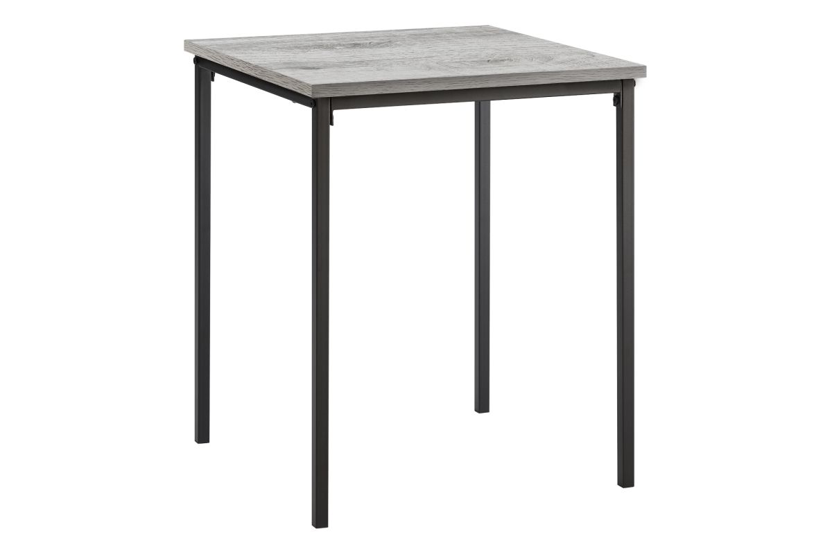 - This 22"h square accent table features a chic, wood-look grey laminate top paired with sleek black metal legs complementing contemporary living.