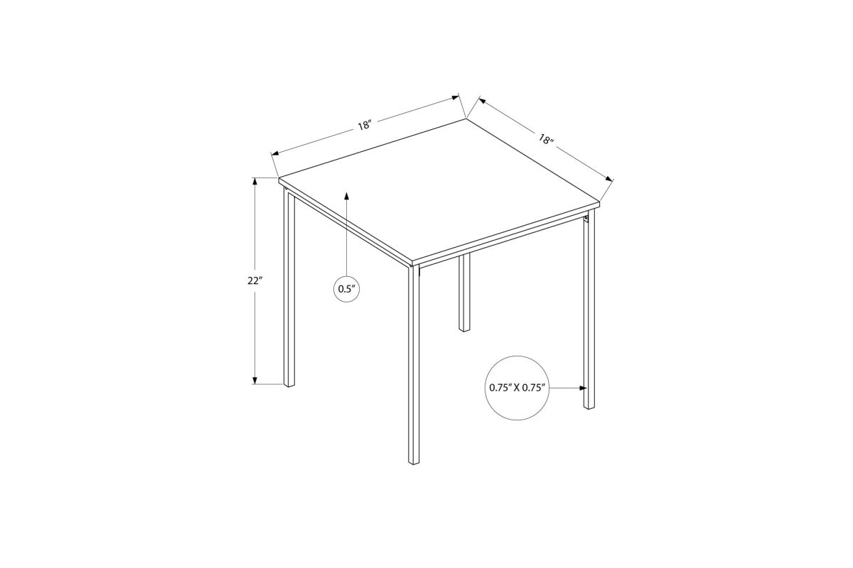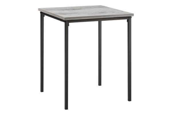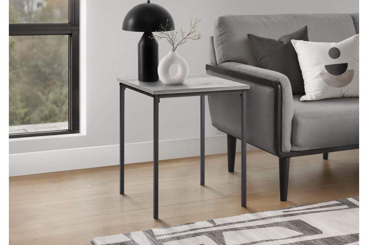 Create a simple and modern living space with this chic, 22"h accent table. Crafted with a fashionable grey laminate top in a contemporary square design, this table is the perfect blend of style and function. Durably designed with sleek black metal legs, this fashionable accent table is also practical with a space-saving design, whether you need a side table for your living room, a nightstand for your bedroom, or a small end table in any corner of your home. Worried about assembly? Fear not! Our accent table boasts an easy-to-assemble feature, ensuring that you can start enjoying its beauty without the hassle. Plus, the easy-to-clean top guarantees that maintenance is a breeze, allowing you more time to enjoy the stunning look of your space. For added peace of mind, our accent table comes with a 5 year limited warranty against manufacturer defects, promising quality and satisfaction for years to come. Embrace stylish living with this side table that blends contemporary appeal with everyday functionality.