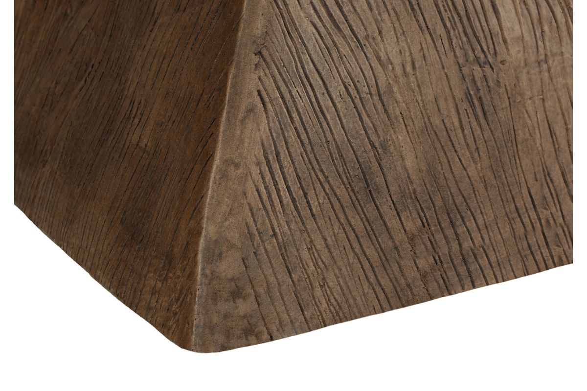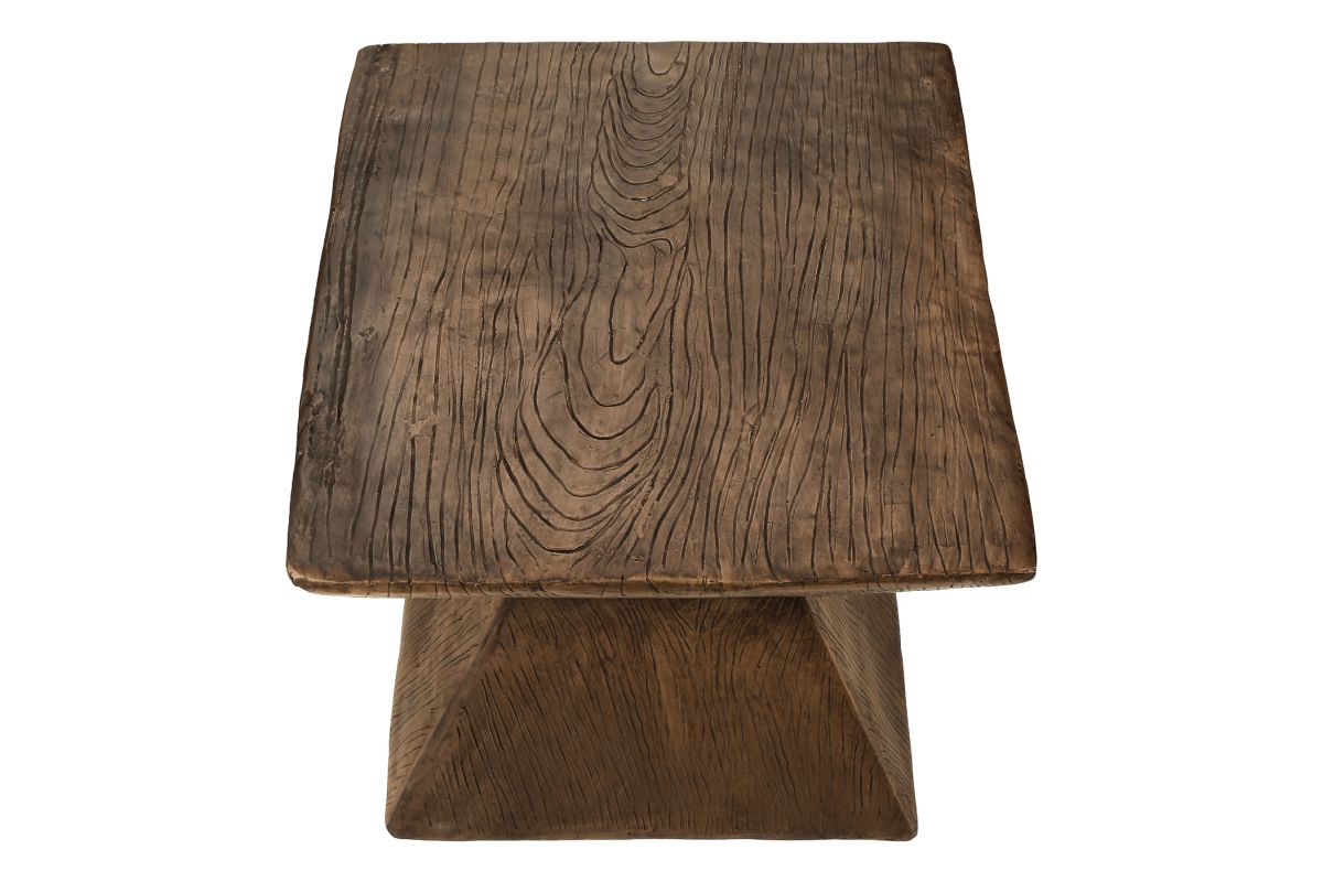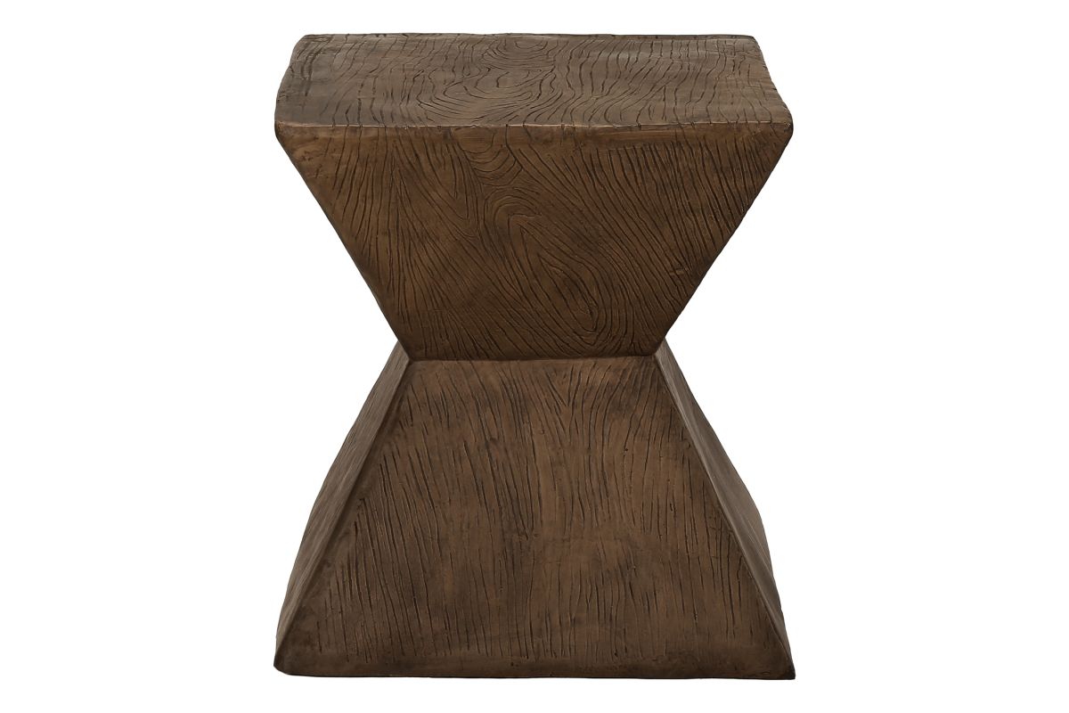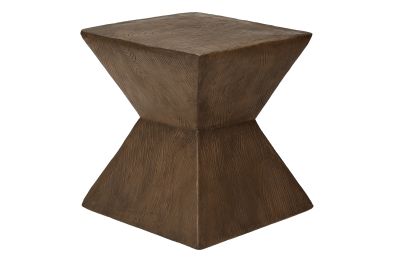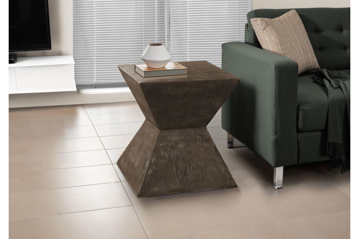 Introducing the ultimate accent table that embodies both style and practicality! Standing at a fashionable 25"h, this walnut finish indoor or outdoor table is the perfect addition to your living room, bedroom, or patio. The geometric shape, with a wood-grain texture on the base, is designed with a contemporary flair and durably crafted with weather-resistant magnesium oxide to withstand harsh outdoor elements. The space saving design means you can seamlessly incorporate it into any corner of your home or outdoor space without sacrificing style or functionality. Whether you need a chic end table for your sofa, a stylish side table beside your favorite chair on your patio, or a versatile nightstand for your bedroom, this table adapts effortlessly to any setting. The smooth, easy to clean top gives you a practical place to set down your drink, the latest novel, or display a decorative object. No assembly is needed so you can instantly style up your space and with a 5 year limited warranty against manufacturer defects, you can rest assured this robust table is made to last. Revamp your indoor/outdoor decor with this modern statement piece that combines fashionable style with durability.