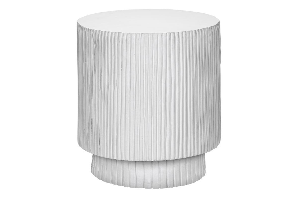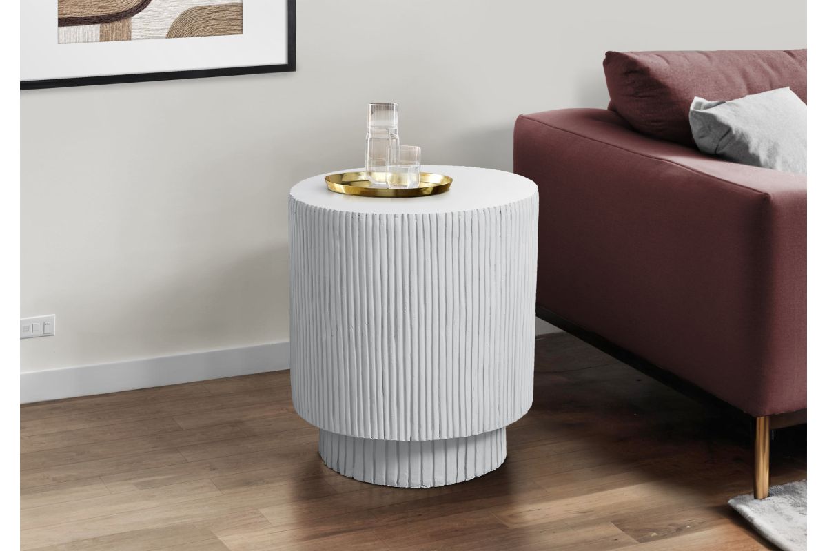 - This 25"h indoor or outdoor accent table in a chic white finish boasts a contemporary ridged design, perfectly uplifting your living room, bedroom, or patio space with modern elegance.