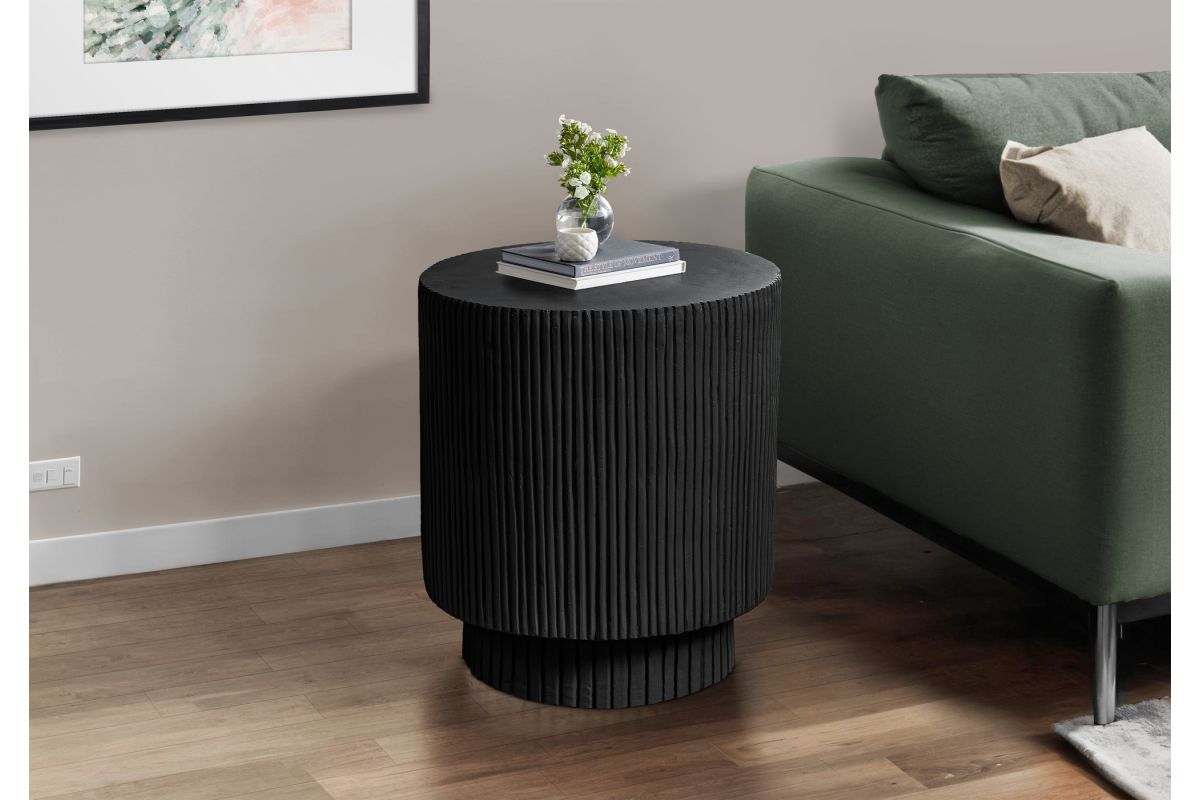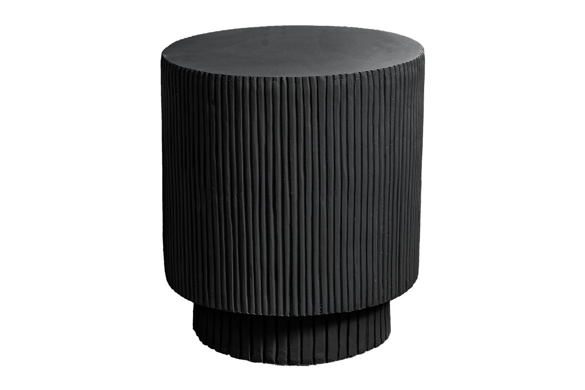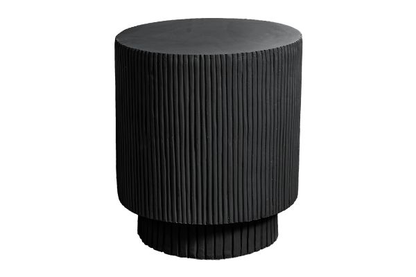 - This 25"h indoor or outdoor accent table in a chic black finish boasts a contemporary ridged design, perfectly uplifting your living room, bedroom, or patio space with modern elegance.