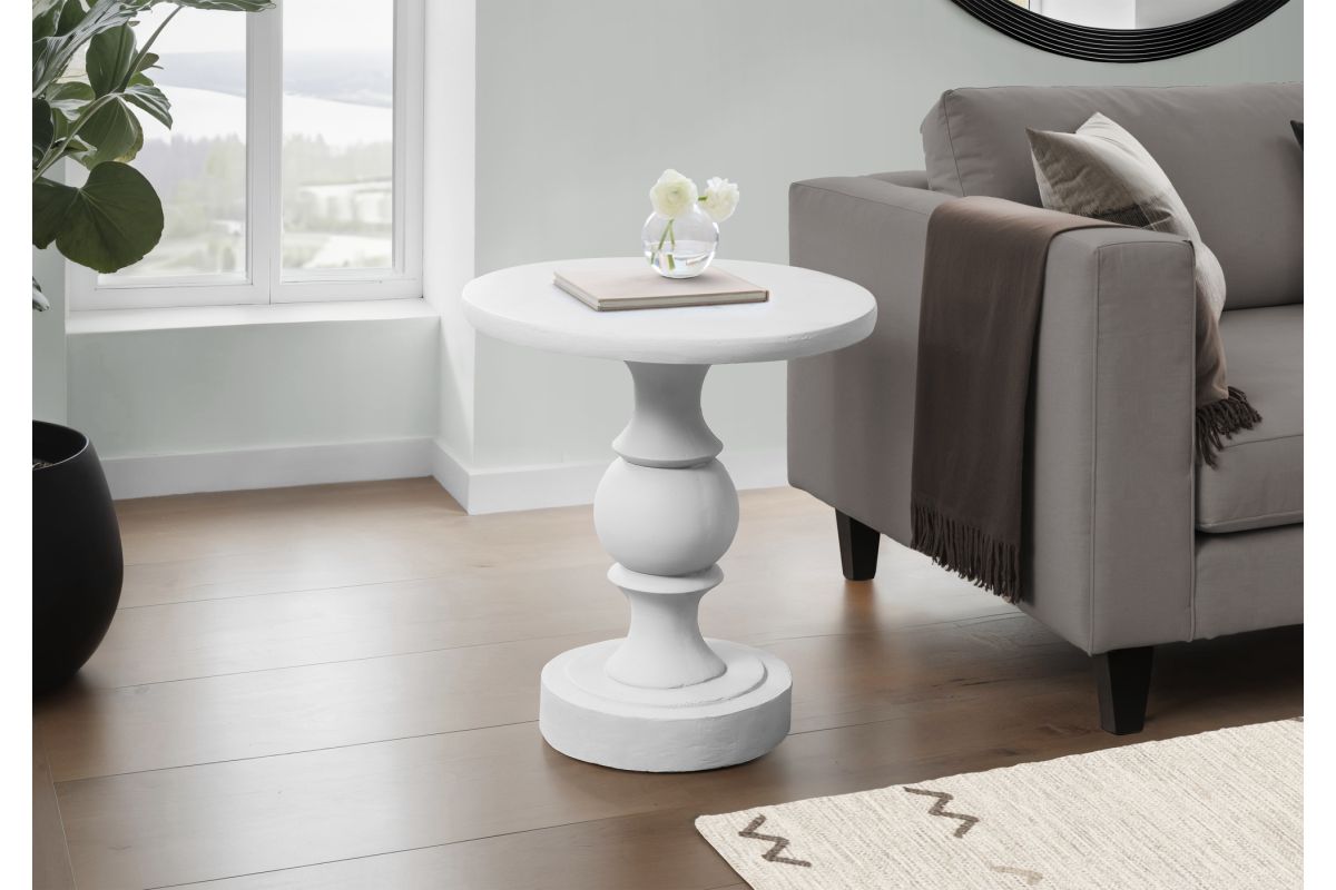 Transform your indoor or outdoor space with this classic, pedestal style, white accent table. A perfect fusion of style and practicality, this robust 25"h round table is durably designed with magnesium oxide for weather-resistance whether used in your transitional style living room, bedroom, or patio space. The easy to clean top makes maintenance a snap whether you need a practical side table for your morning coffee, a fashionable nightstand for your bedtime essentials, or a sophisticated end table that sparks conversation, this versatile piece checks all the boxes. Arriving fully assembled in a space saving design, you can instantly place this table in any setting to enhance your decor. A 5 year limited warranty against manufacturer defects is included for this quality made and reliable indoor/outdoor table. Redefine your space with this fashionable style accent table perfect for those who appreciate both elegance and functionality.