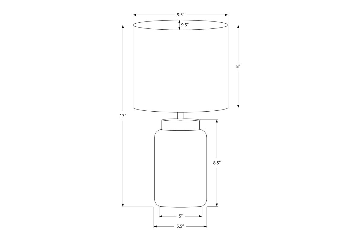 - Product dimensions: 9.5 in. L x 9.5 in. W x 17 in. H; base: 5.5 in. L x 5.5 in. W x 8.5 in. H; shade: 9.5 in. L x 9.5 in. W x 8 in. H
