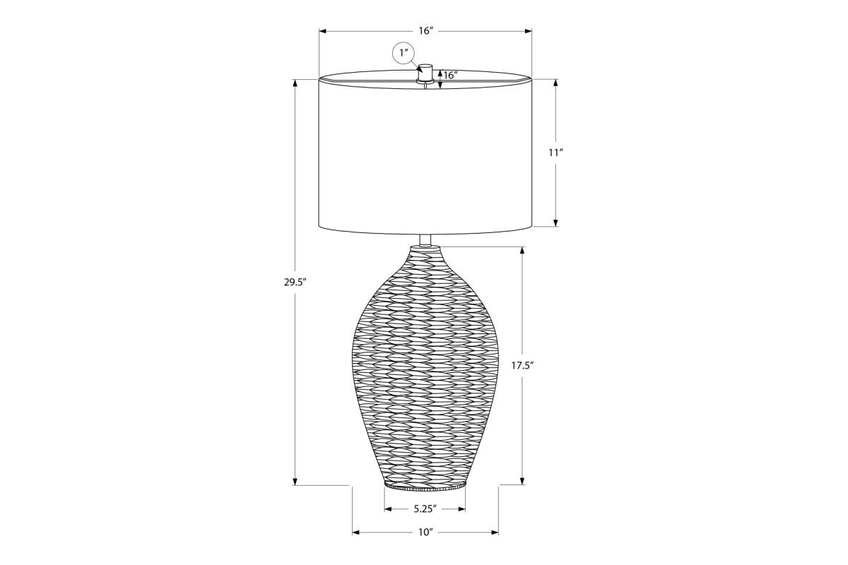 - "Add a fresh element to your home decor with this stylish 30"h table lamp, featuring a natural rattan design with a woven textured base and a chic beige fabric shade, perfect for any transitional living room, bedroom, or office space."