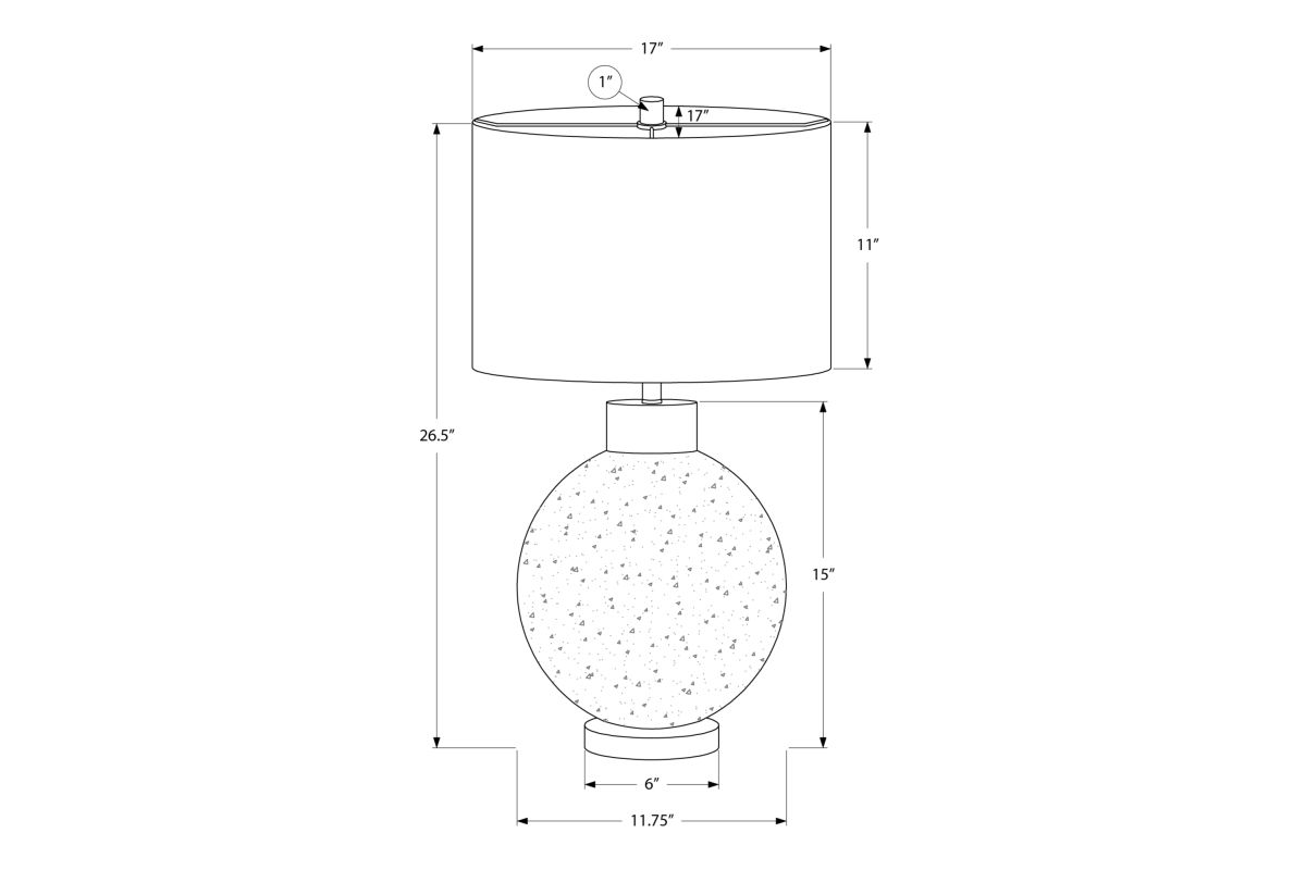 Make a stylish statement in any room with this contemporary, 27" h table lamp with a globe-shaped, beige resin body designed to look like natural stone, accented with silver metal and resting on a clear acrylic base to transform your living room, bedroom, or office into a chic sanctuary. The elegant ivory fabric shade softly diffuses the light to brighten up an end or side table, nightstand, or console table. Equipped with a convenient 3-way switch for a 100W bulb (3-way bulb not included), this lamp allows you to choose the perfect ambiance, whether to create a cozy atmosphere for a movie night or need bright illumination for late-night reading. Made with durable and quality materials, this accent lamp is backed by a 2 year limited warranty against manufacturer defects so you can enjoy its fashionable presence without worry. This stylish resin lamp not only provides essential lighting but also serves as a decorative focal point that reflects your refined taste.