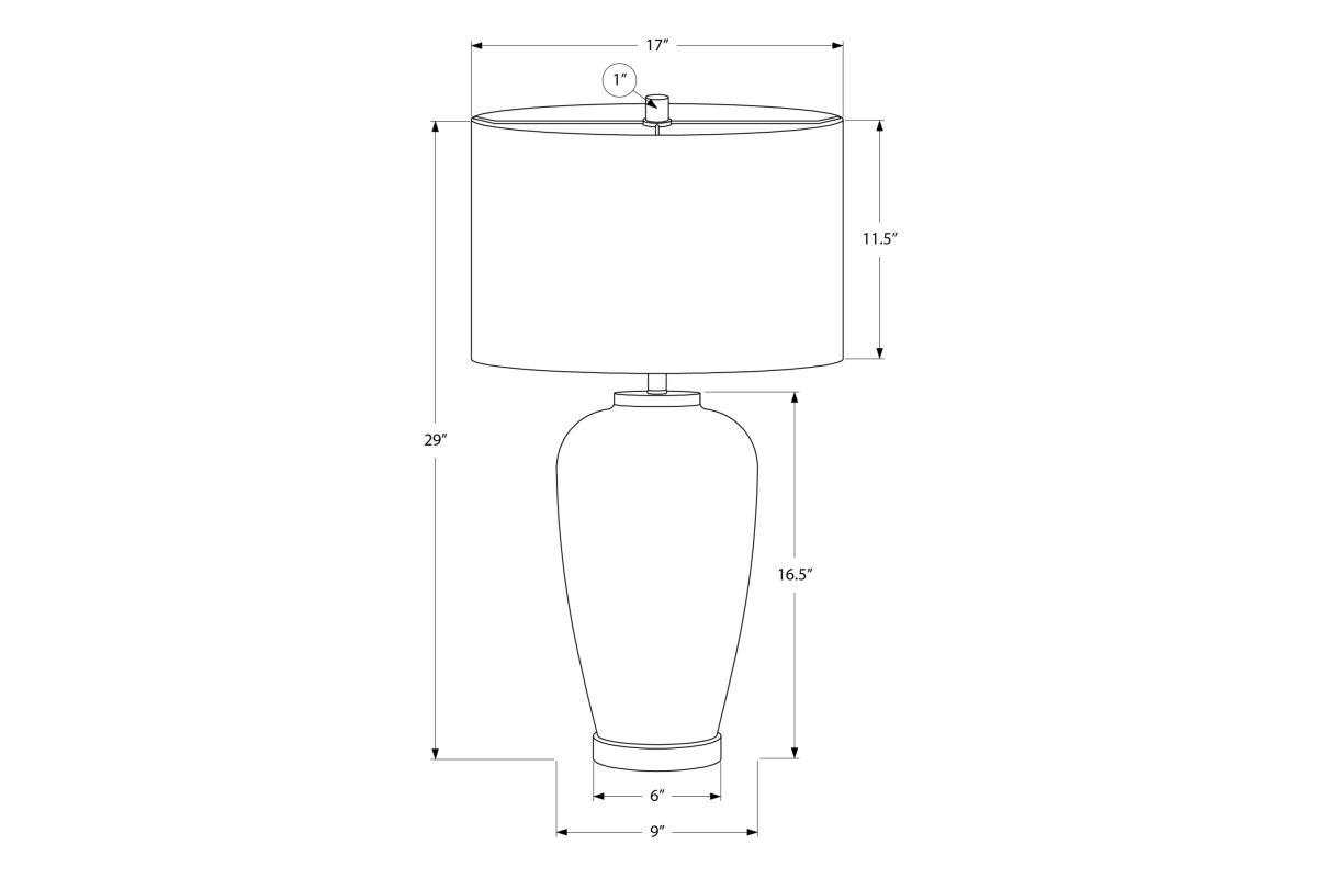 - This 29"h table lamp features a striking blue ceramic base paired with an elegant ivory fabric shade, making it a fashionable and trendy addition to contemporary living rooms, bedrooms, and home offices.