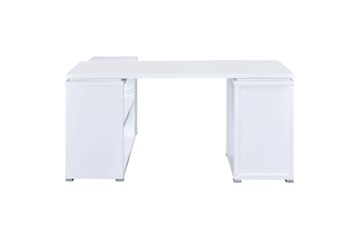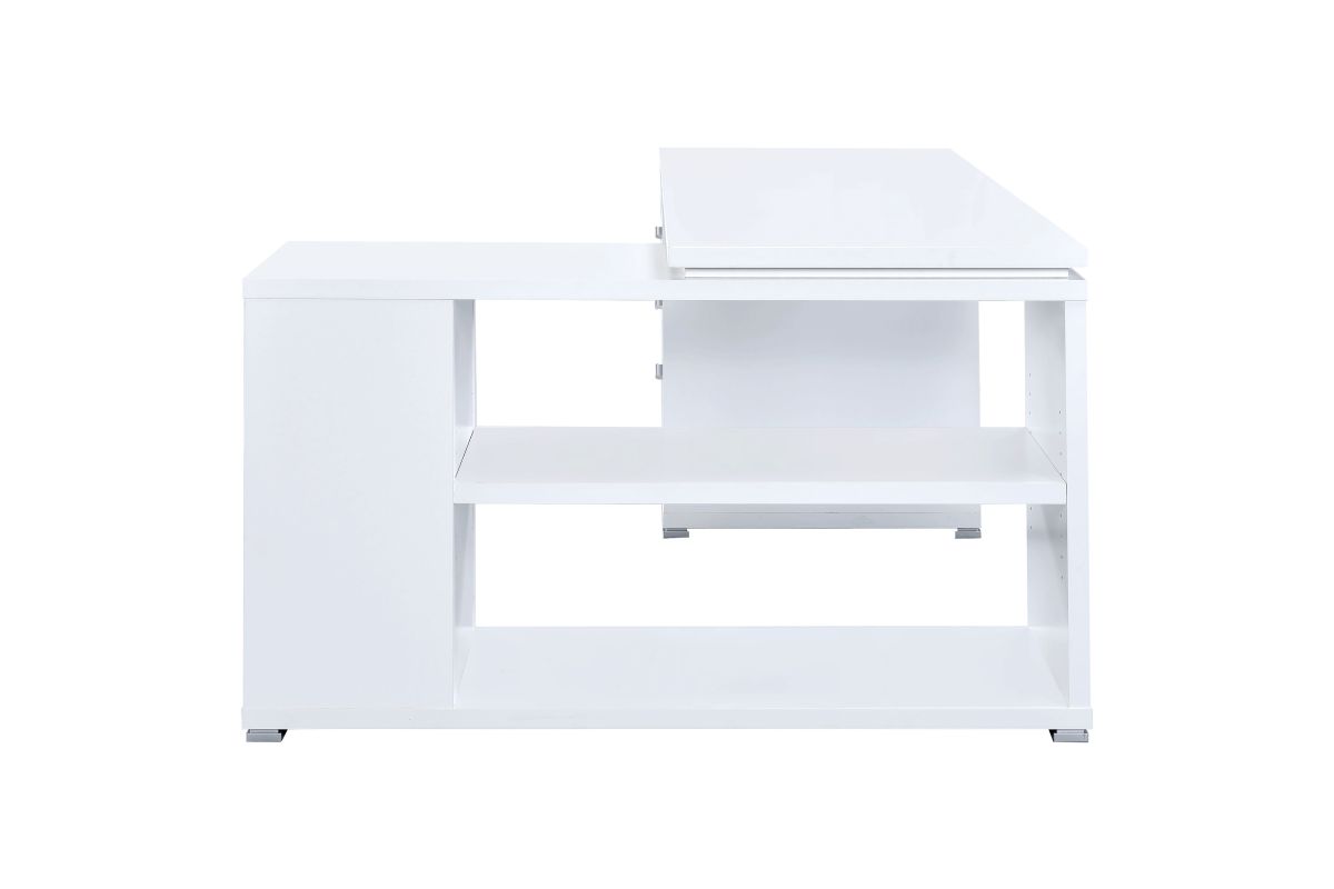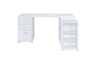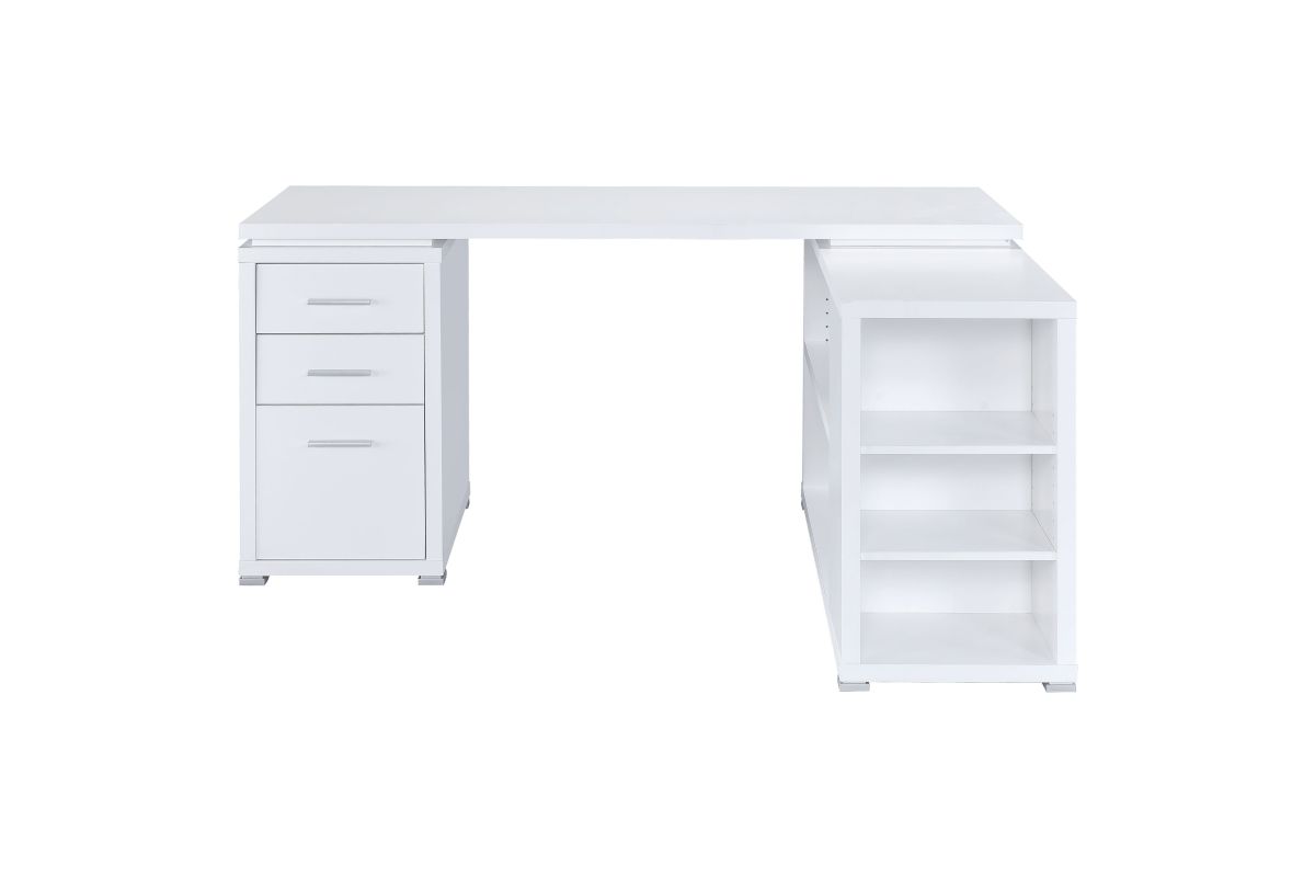 Bring organization and productivity into your workspace with this versatile L-shape office desk. Designed with an articulating return, it offers generous surface space for computers, books, and projects while keeping everything within reach. Two drawers and a built-in file cabinet provide secure storage for documents and supplies, while open shelving adds flexible display options. Crafted with engineered wood and laminate veneer, this sturdy desk blends durability with functional style for the modern office.