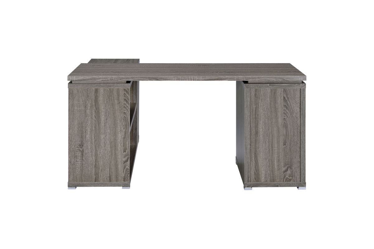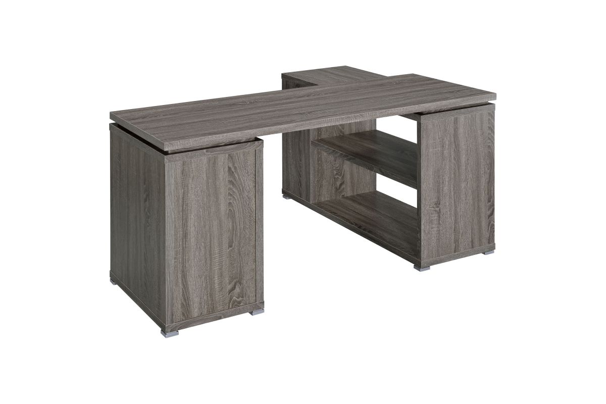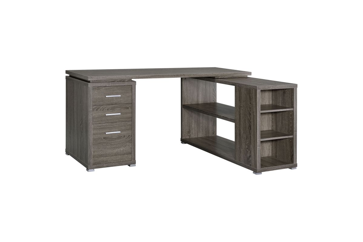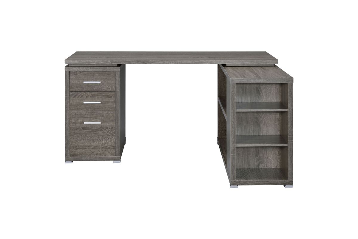 Bring organization and productivity into your workspace with this versatile L-shape office desk. Designed with an articulating return, it offers generous surface space for computers, books, and projects while keeping everything within reach. Two drawers and a built-in file cabinet provide secure storage for documents and supplies, while open shelving adds flexible display options. Crafted with engineered wood and laminate veneer, this sturdy desk blends durability with functional style for the modern office.