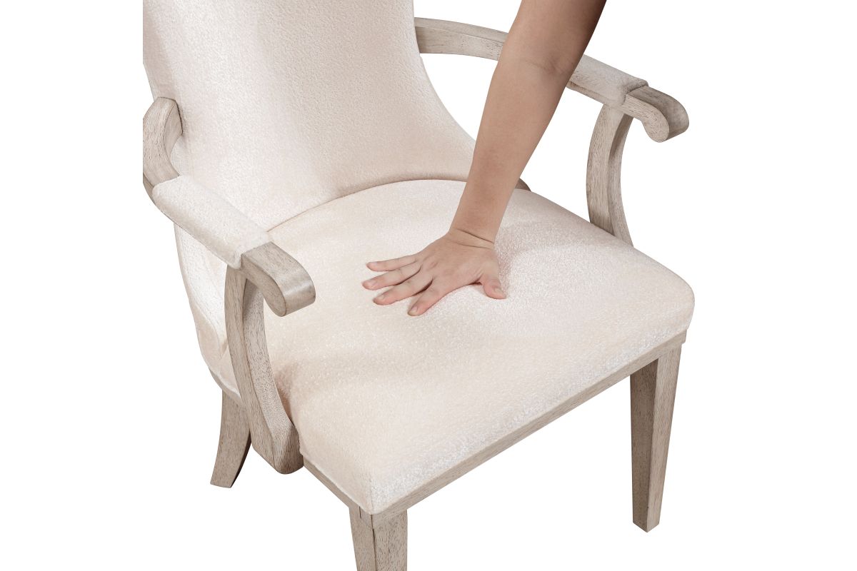 Enhance your dining area or living space with this elegant and comfortable arm chair. Featuring a stylish light gray finish on its durable wood frame and plush light felt polyester upholstery, this chair offers both aesthetic appeal and exceptional comfort. The foam-cushioned seat and back provide supportive seating, making it ideal for extended use at a dining table or as a sophisticated accent piece. With its sturdy construction and classic design, this arm chair is a versatile addition to any home. Assembly is required.
