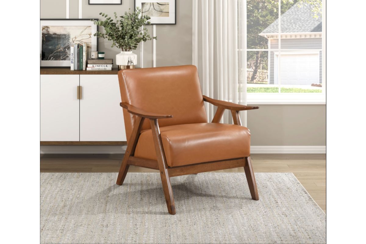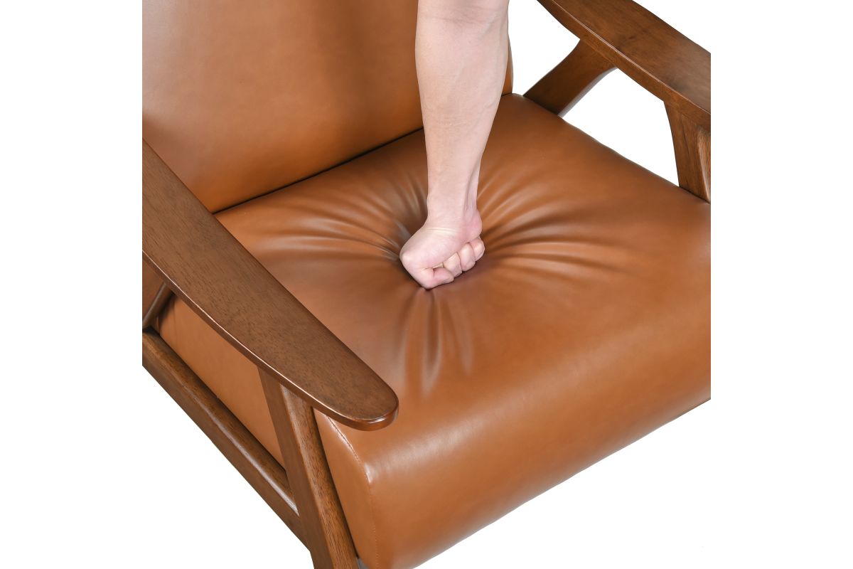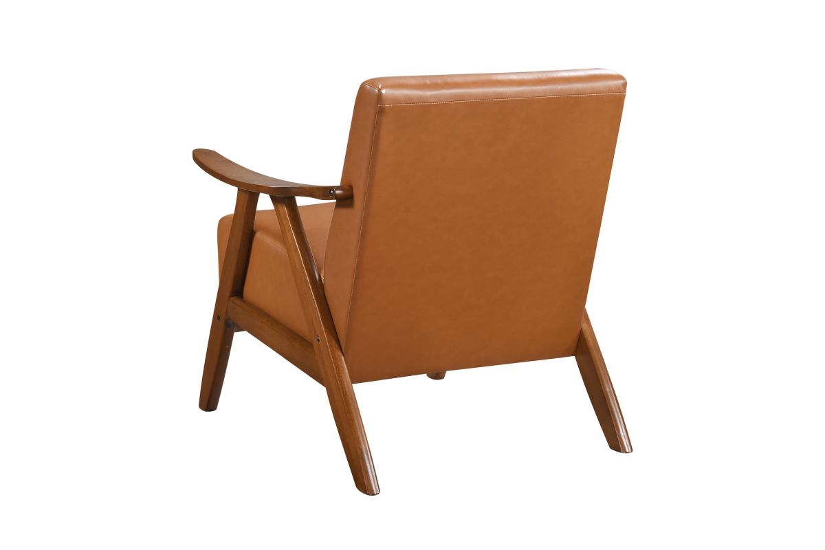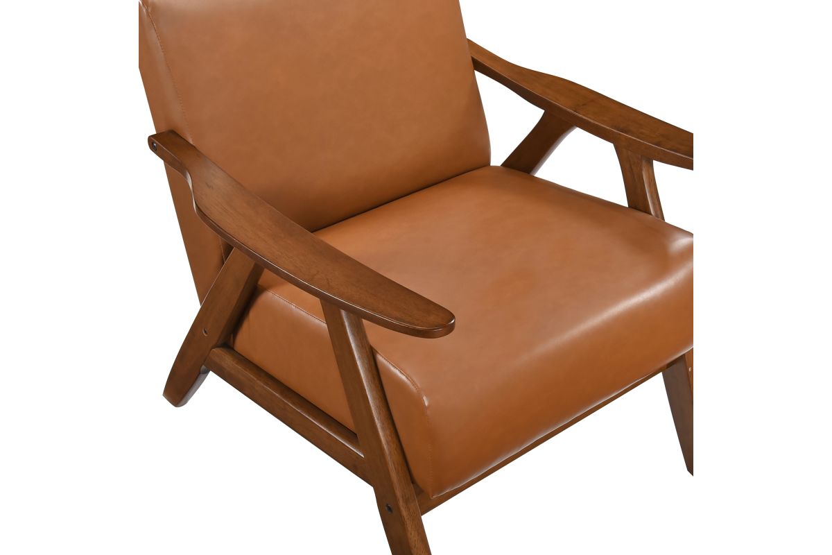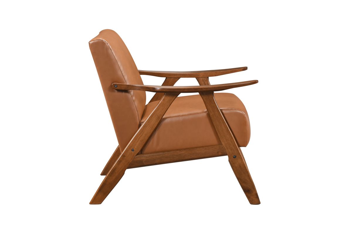 The retro-inspired wood framing of the Damala Collection will perfectly accent your modern home décor. Subtle contouring to the chair’s wood frame is finished in walnut, presenting as a classic complement to the brown faul leather that covers the padded chair seat and back.